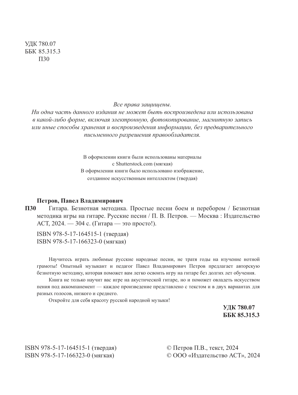 Научитесь играть любимые русские народные песни, не тратя годы на изучение нотной грамоты! Опытный музыкант и педагог Павел Владимирович Петров предлагает авторскую безнотную методику, которая поможет вам легко освоить игру на гитаре без долгих лет обучения.