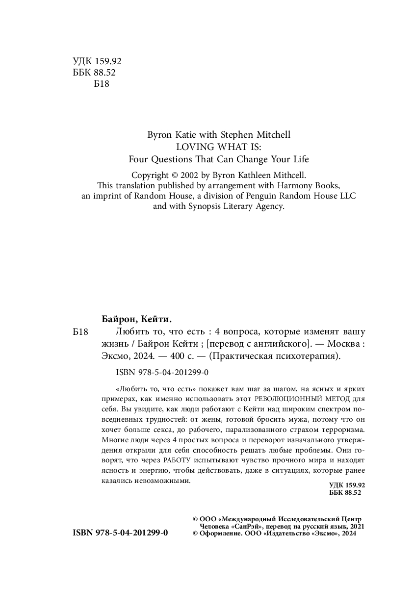 | Название в оригинале | Loving What Is: Four Questions That Can Change Your Life |