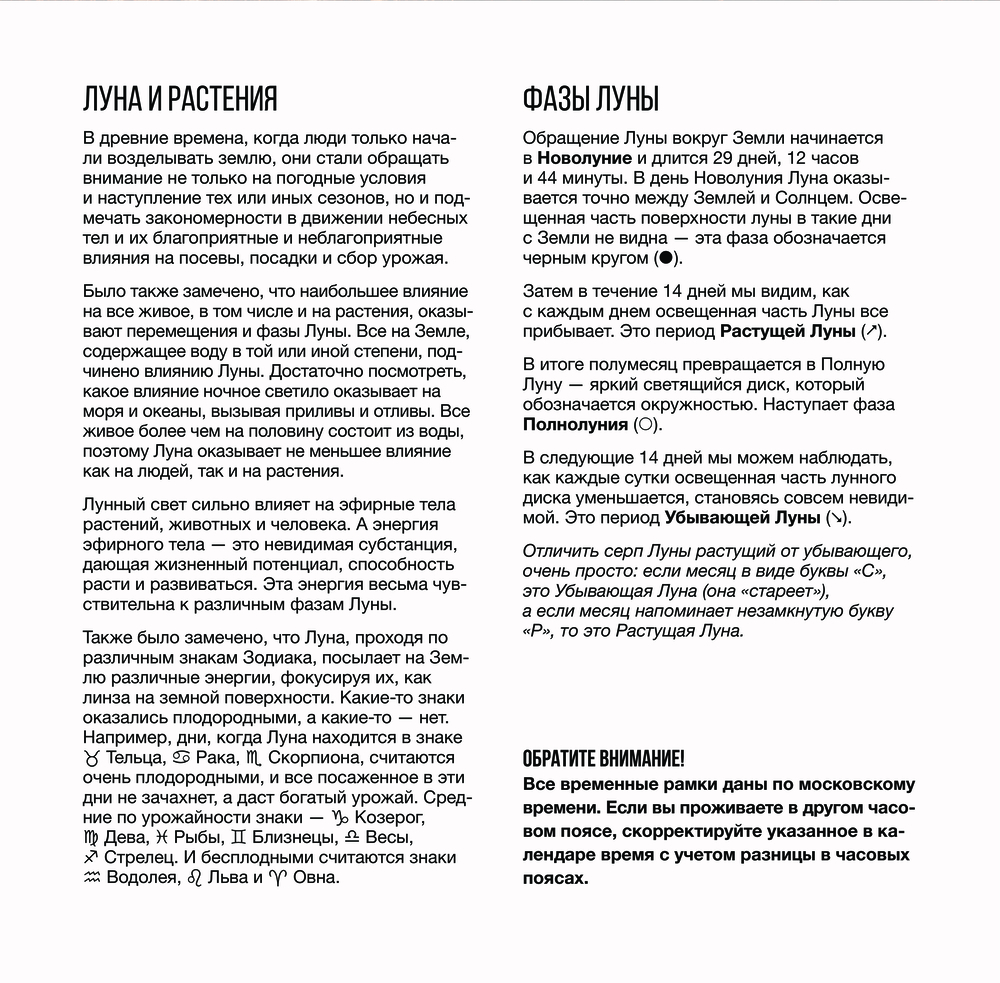"Большой лунный посевной календарь на 2025 год" от Татьяны Борщ содержит достоверную информацию о наиболее благоприятных днях для посадки и пересадки, прополки, обрезки и подкормки различных культур в зависимости от расположения Луны. Здесь вы найдете советы о том, как правильно организовать работу на приусадебном участке, в саду, в теплице и даже на подоконнике, как сохранить урожай и подготовиться к новому сезону. Календарные сетки представляют собой интуитивно понятные справочные таблицы, из которых вы узнаете о расположении Луны, ее движении по зодиакальному кругу, рекомендованных работах и культурах, требующих особого внимания в те или иные лунные сутки.