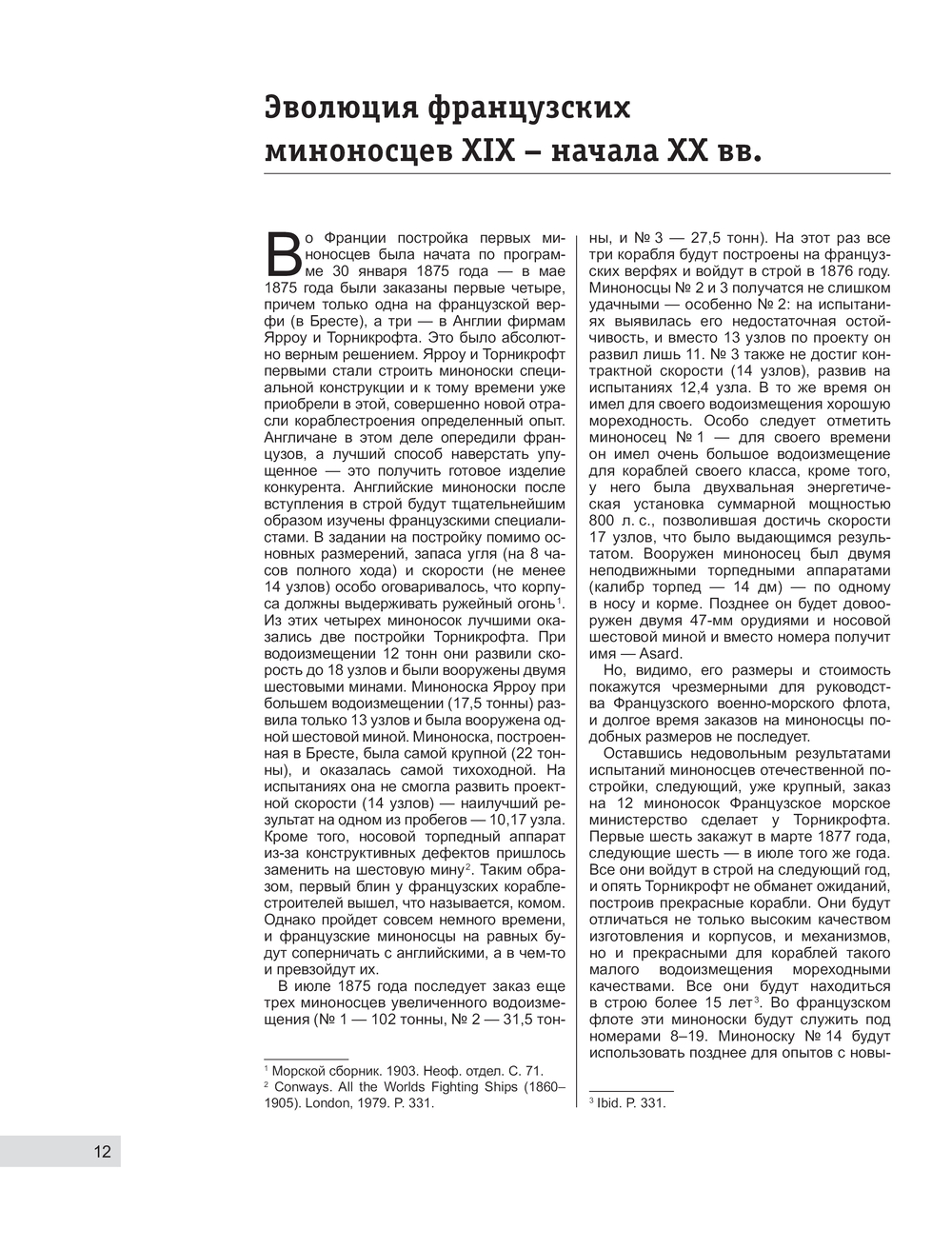 Во второй половине XIX века появление новейшего оружия – торпед и миноносцев оказало огромное влияние на развитие военно-морского искусства. Именно тогда дорогостоящие бронированные исполины утратили свое безраздельное господство на морях. Одними из самых передовых стали миноносные силы Франции, где увлечение маленькими стремительными "ночными разбойниками" проявилось особенно сильно. В Третьей республике строительство миноносцев началось по программе 1875 года, а головной эсминец заложенной в 1909 году серии "Буклие" (Bouclier) уже развивал рекордную скорость в 35 узлов, став самым быстроходным кораблем во всем французском ВМФ. Кроме того, французы активно продавали свои миноносцы другим странам. Даже Китай на рубеже веков закажет во Франции два минных крейсера, но крупнейшим заказчиком была Российская империя. Под Андреевским флагом построенные в Гавре миноносцы примут активное участие в Русско-японской и Первой мировой войнах. В 1916 году эсминец "Грозовой" потопит новейшую германскую субмарину, и такой успех не сможет повторить ни один миноносец Российского флота.