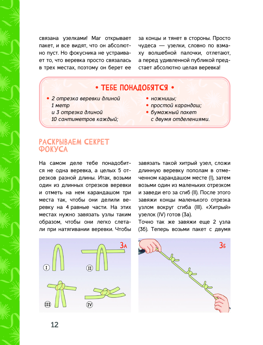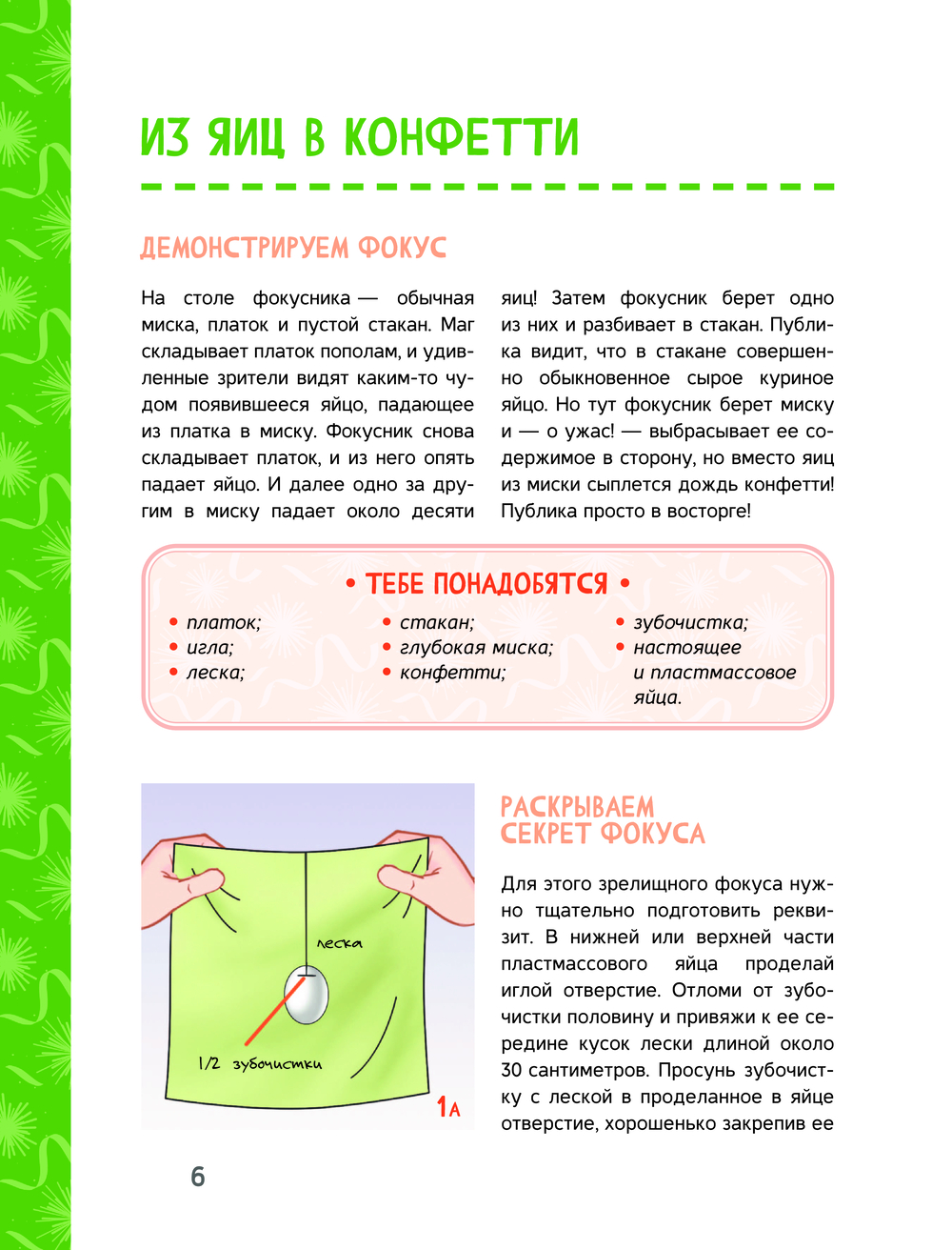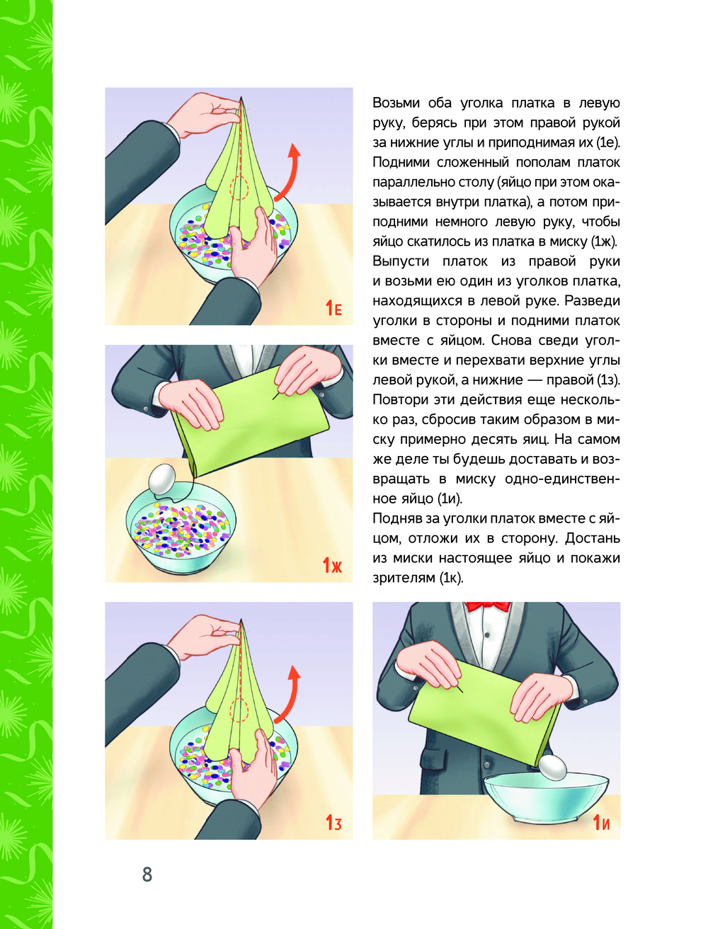 И еще: помимо описания самого фокуса в данном издании присутствует теоретическая часть, гдераскрывается секрет трюка, что позволяет юным фокусникам сделать выводы о том, как важно уметь разгадывать загадки и постигать тайны, скрытые за видимой реальностью. А это, без сомнения, весьма занимательное занятие, которое может стать настоящим увлечением на всю жизнь.