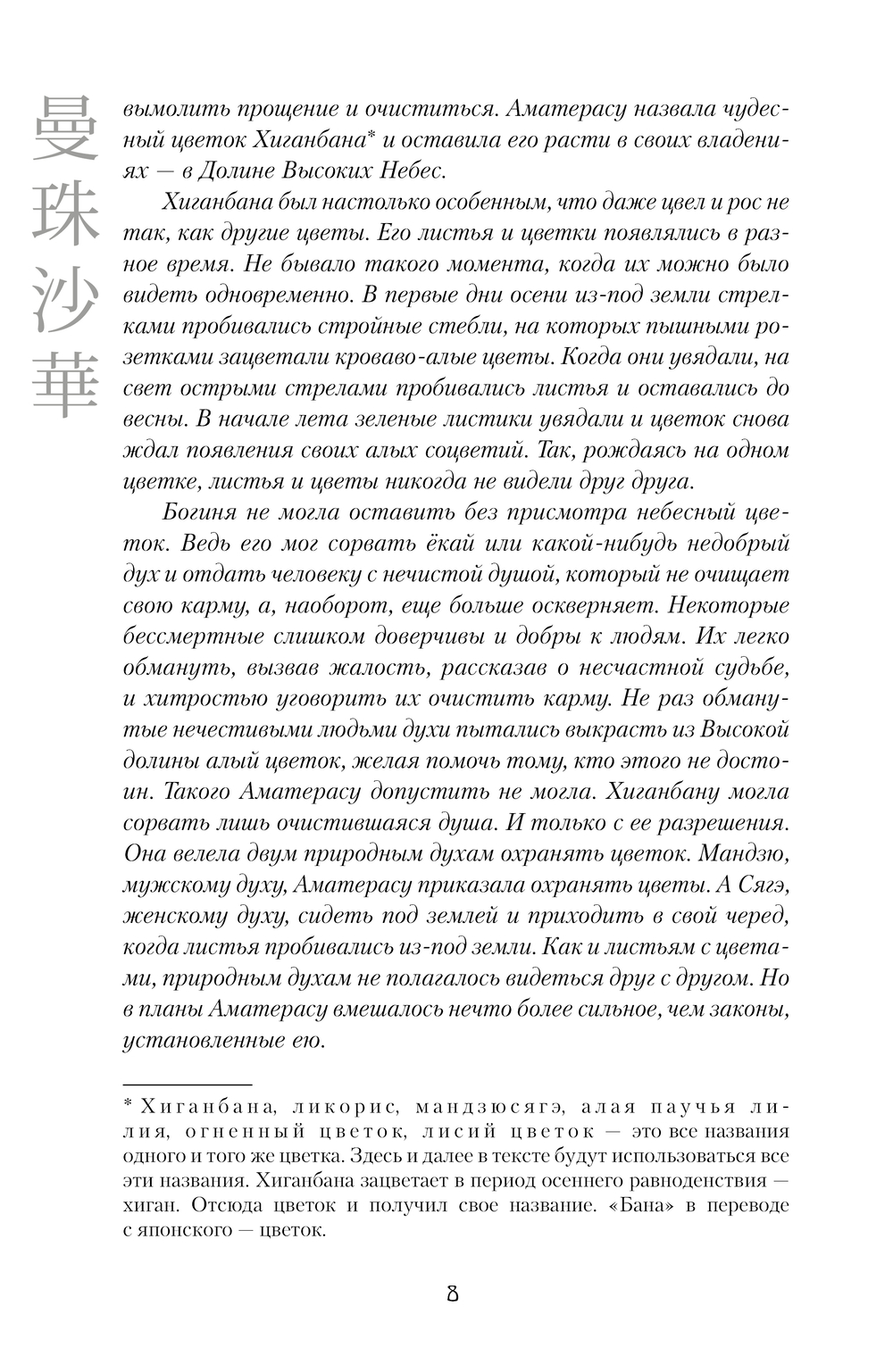 В основу этой истории легла красивая, но грустная японская легенда о цветке хиганбана, который однажды посадила у себя в Долине Высоких Небес богиня солнца Аматерасу. Она приказала охранять цветок двум природным духам Мандзю и Сягэ, а те взяли и влюбились друг в друга, вопреки всем небесным законам. Рассерженная Аматерасу наказала их, разделив влюбленных навсегда. Только после смерти, в царстве мертвых Ёми, они смогли встретиться вновь. Там, в стране Желтых вод, Мандзюи Сягэ пообещали найти друг друга в следующей жизни, чтобы полноправно насладиться своими чувствами. И все бы им удалось, если бы не одна влюбленная кицунэ – ей тоже хочется быть рядом с Мандзю. И она ни перед чем не остановится.