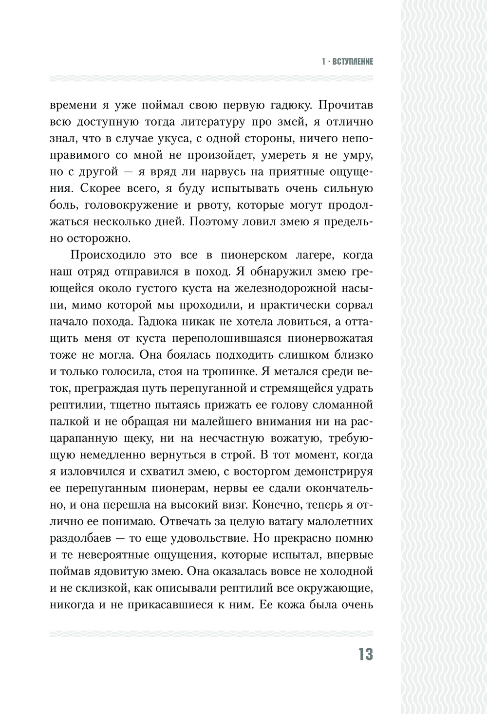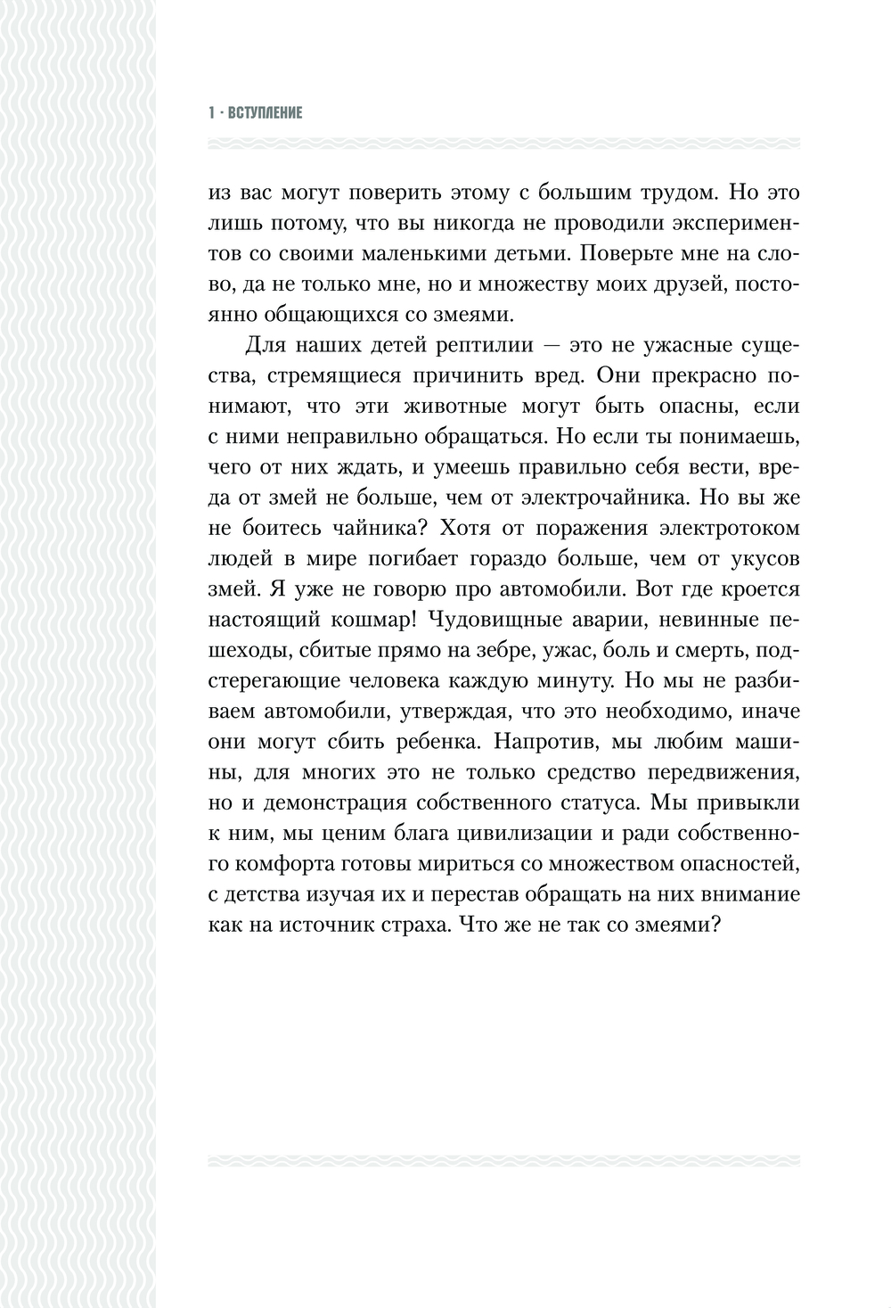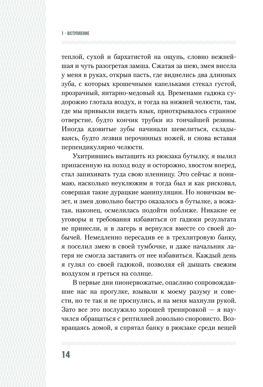 Люди думают, что делятся на множество категорий. На самом деле люди делятся всего на два типа – на тех, кто при слове змея испытывает ужас, отвращение, омерзение и страх, и на тех, кто, увидев змею, восторгается и получает настоящее удовольствие от созерцания этого прекрасного существа.