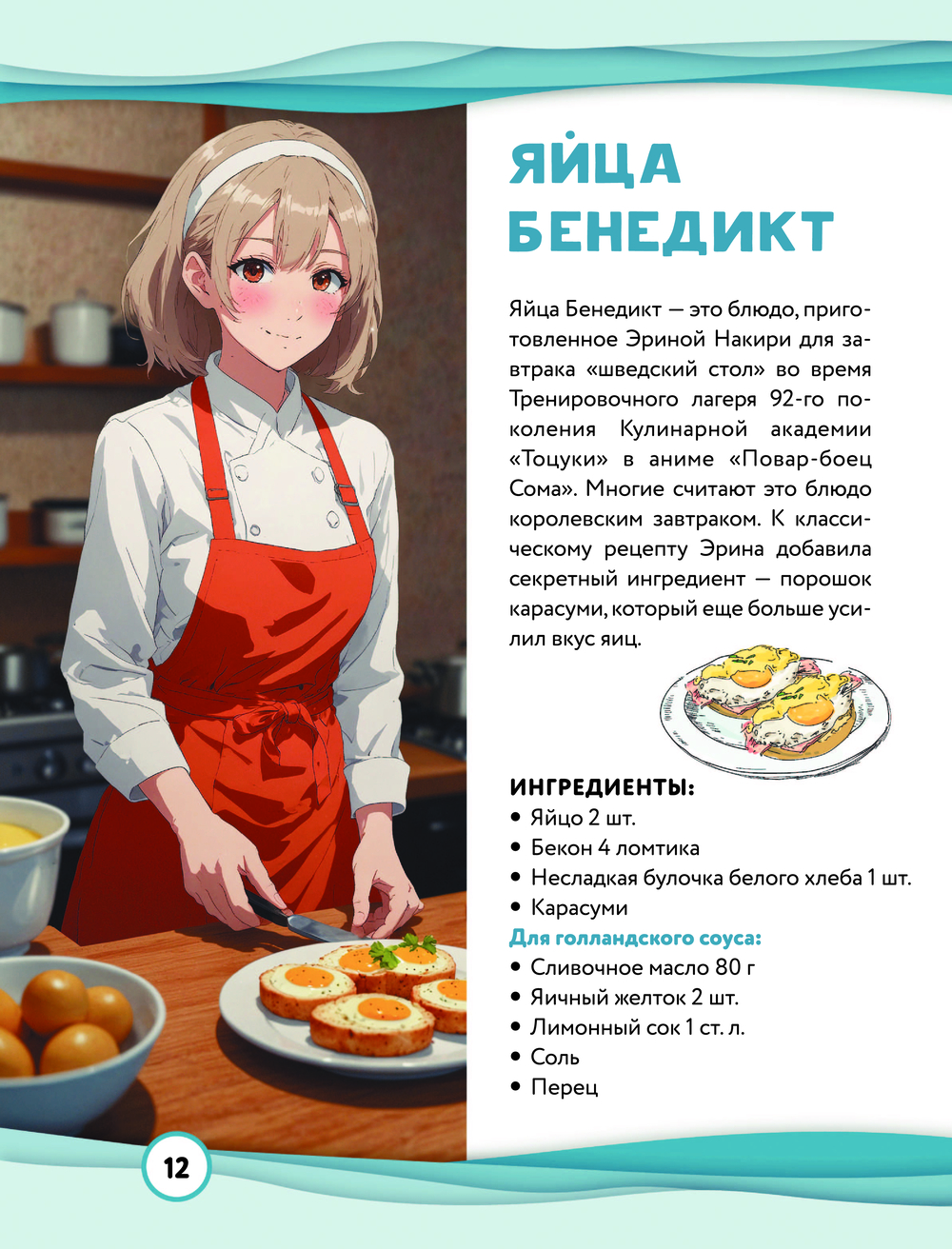 Легендарный рамэн и обожаемый всеми японцами десерт данго из "Наруто", нежный омлет омурайсу из "Атаки Титанов", популярный мисо-суп из "Евангелиона" – рецепты этих и множества других аппетитных блюд, которые встречаются в любимых вами аниме и манге, вы найдете на страницах этой книги. Пошаговые инструкции, полезные советы, интересные факты, познавательные истории, яркие иллюстрации помогут вам освоить азы приготовления разнообразной вкусной еды, а главное – окунуться в самый популярный на сегодняшний день вид японского искусства, познакомиться скультурой и традициями этой удивительной страны.
