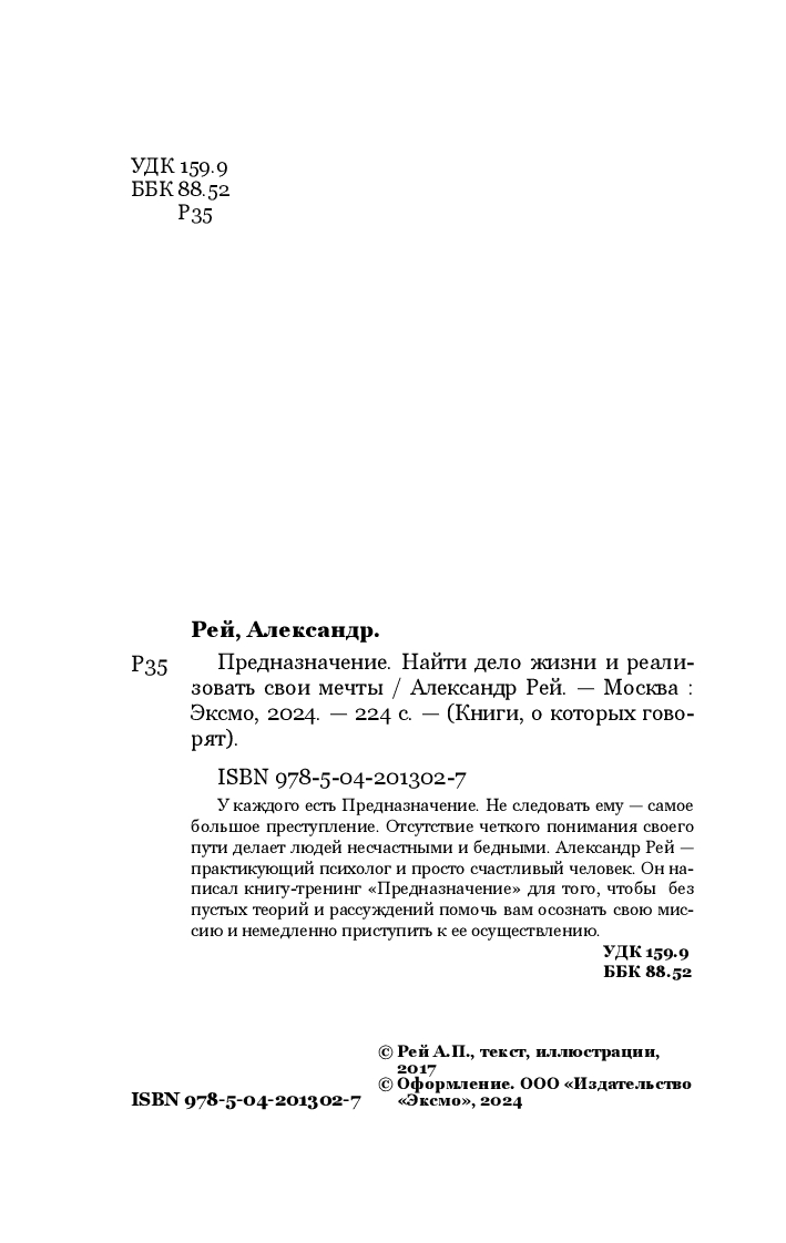 У каждого есть Предназначение. Не следовать ему – самое большое преступление. Отсутствие четкого понимания своего пути делает людей несчастными и бедными. Александр Рей – практикующий психолог и просто счастливый человек.