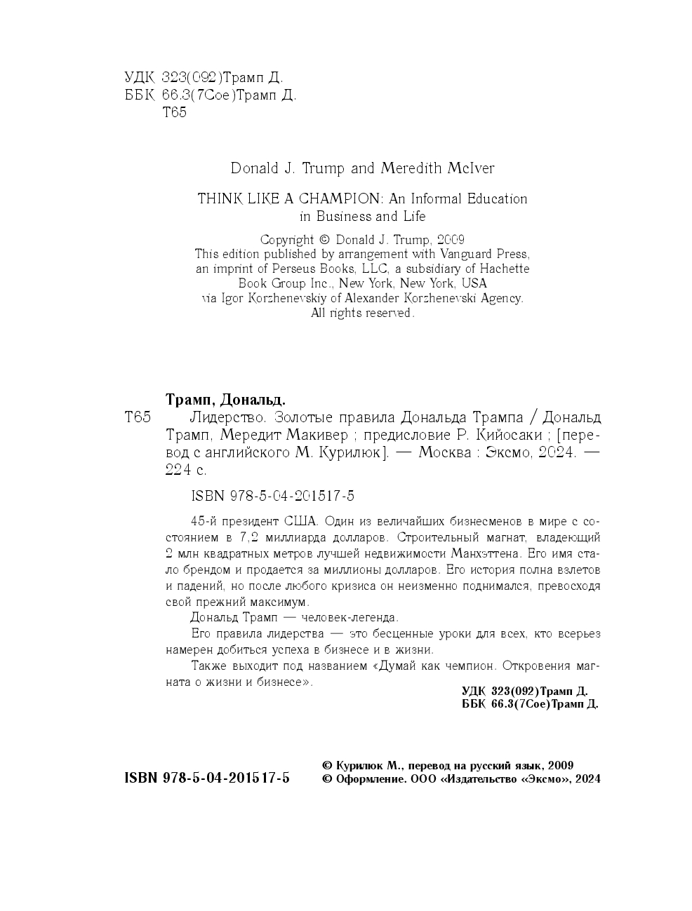 | Название в оригинале | Think Like a Champion: An Informal Education In Business and Life |