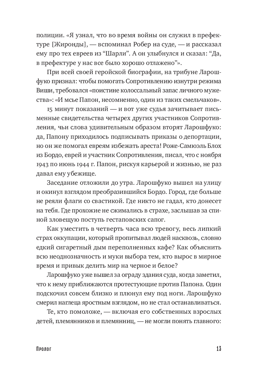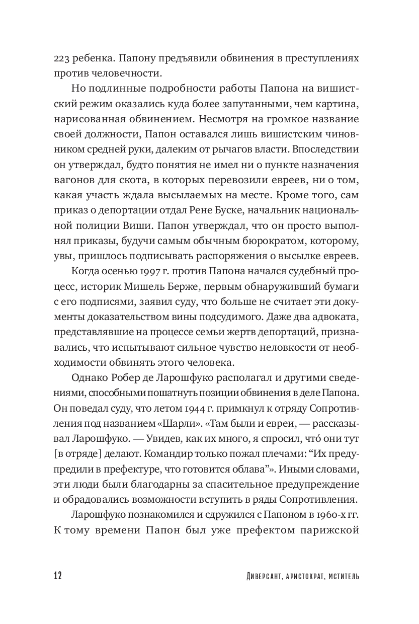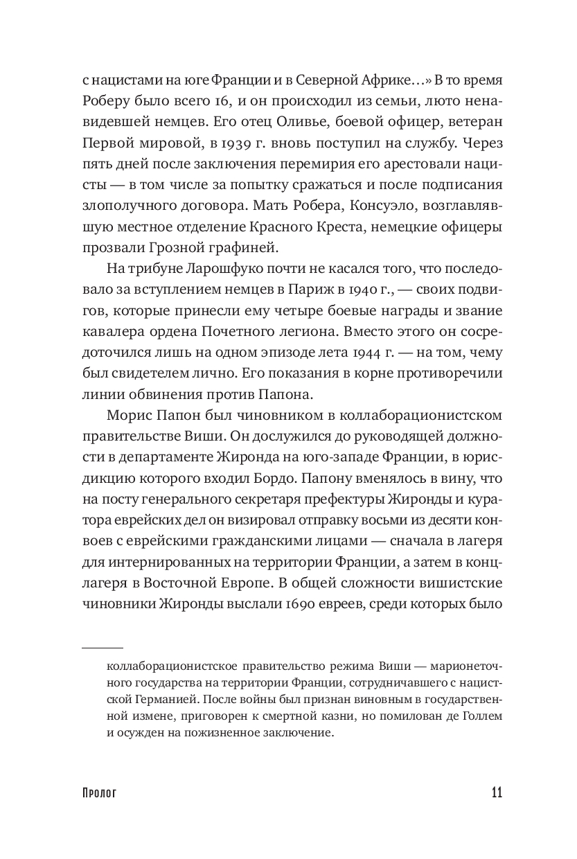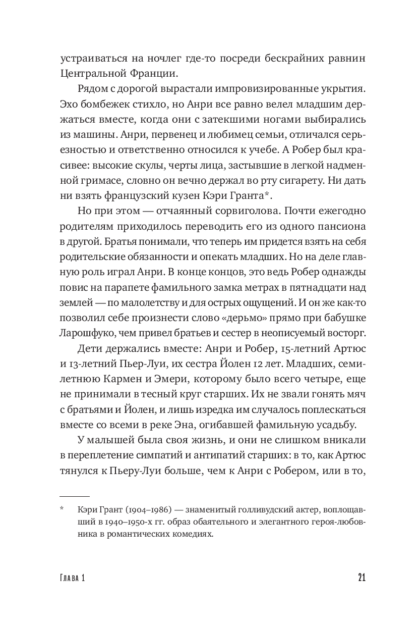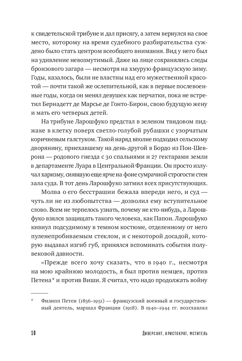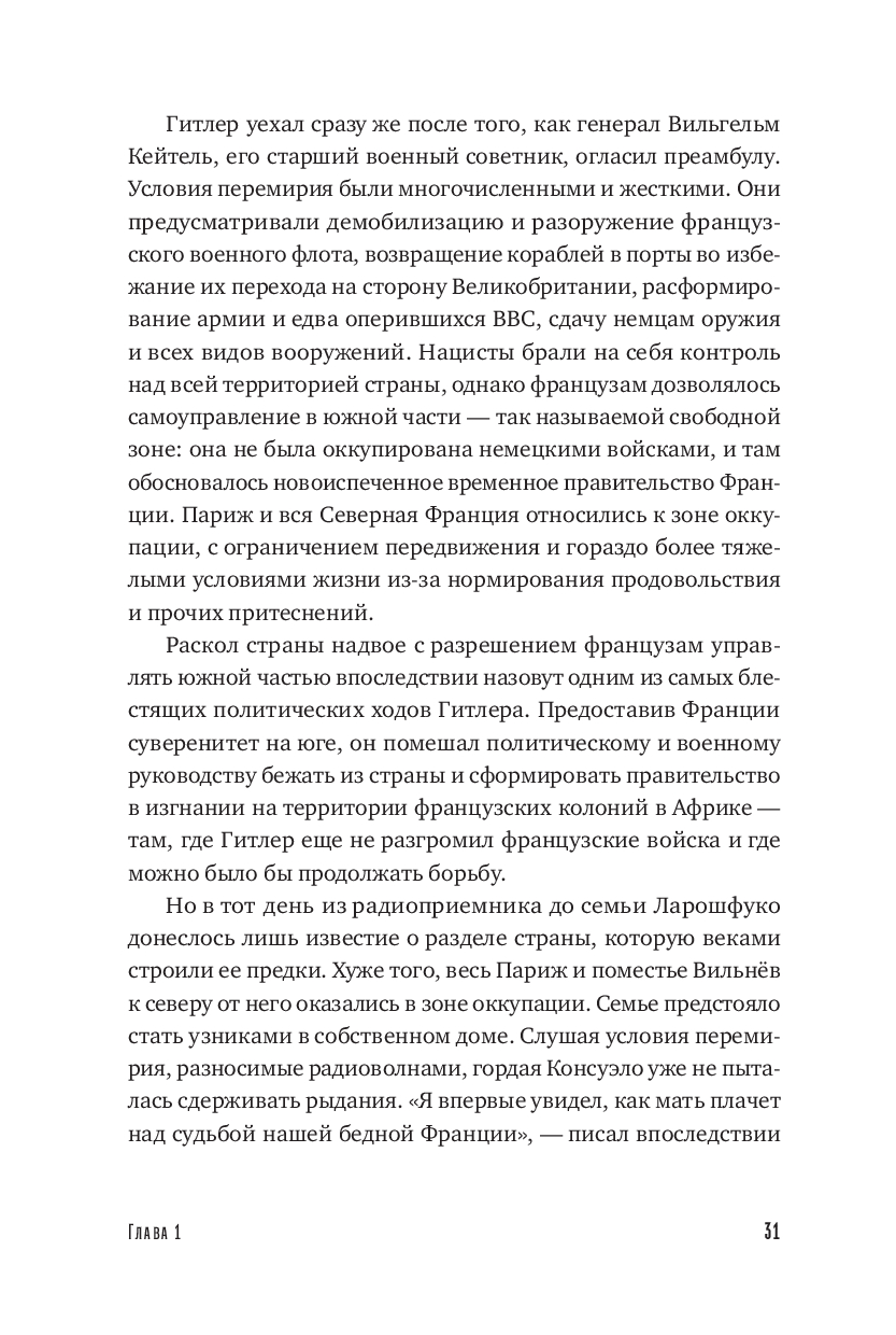 Автор прослеживает трансформацию: подросток, который средненько учился и обожал лазать по стенам фамильного замка, превращается в бесстрашного подпольщика, агента британской разведки, непревзойденного мастера диверсий и маскировки. Ларошфуко взрывал немецкие поезда, дважды спасся от смертной казни, даже наряжался монахиней. Впрочем, эта книга – не легкомысленный экшн-триллер. Она не только о приключениях юного графа-диверсанта, она о трагедии Франции, расколотой и униженной оккупацией. Робер и его товарищи по Сопротивлению показывают, что раздавленная и опозоренная нация способна и на нечто светлое и благородное. Даже если таких, как они, всего два процента.