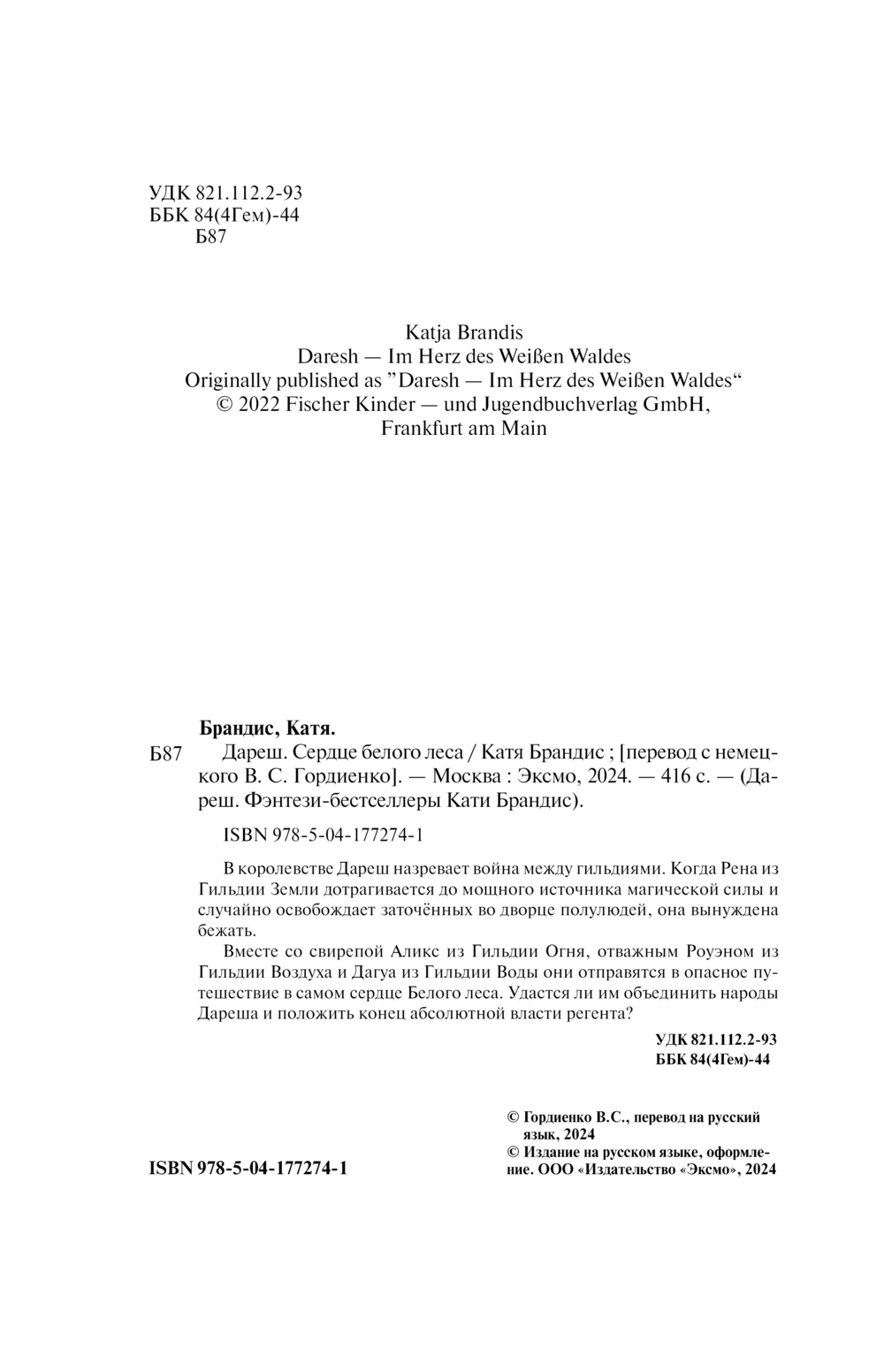 | Название в оригинале | Daresh – Im Herz des Weißen Waldes by Katja Brandis |