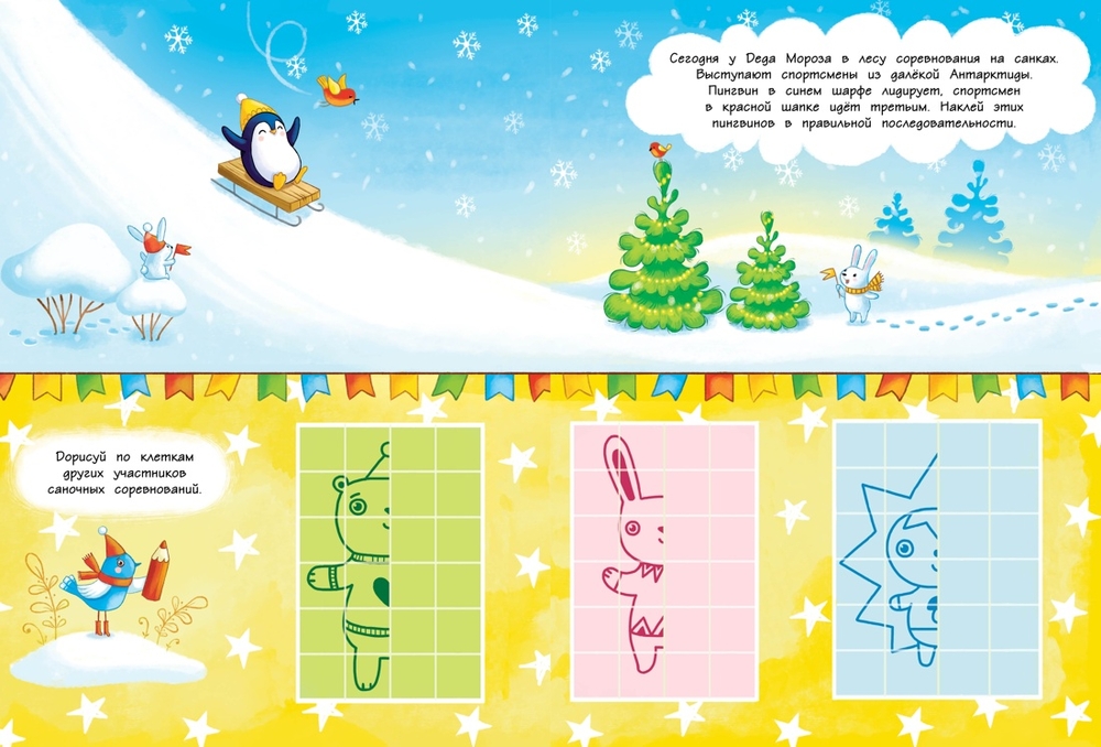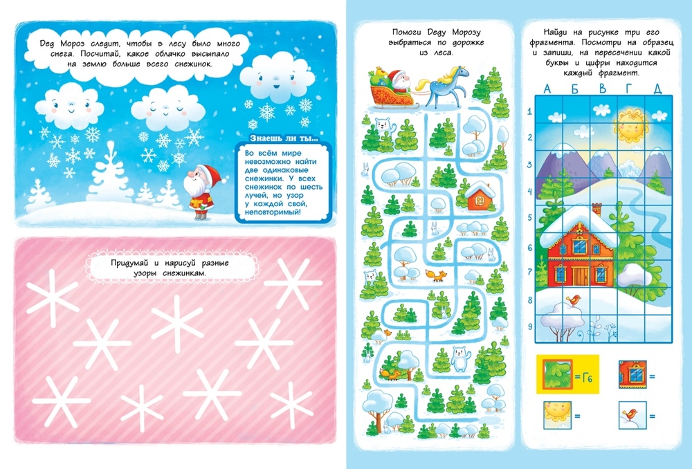 У Дедушки Мороза перед Новым годом масса дел: надо проследить за тем, чтобы в лесу было достаточно снега, и игрушки для ёлки смастерить, и подарки упаковать, а ещё обязательно написать стих для конкурса! В этой книжке тебя ждут лабиринты, игры с наклейками и рисовалки, загадки и кроссворды. Испеки вместе с белочками пряники, смастери игрушки для ёлки с Дедушкой Морозом и вырежи яркие маски для новогоднего праздника. Запасайся цветными карандашами и праздничным настроением – и вперёд, в зимнюю сказку!