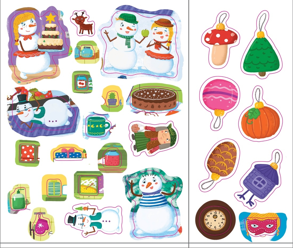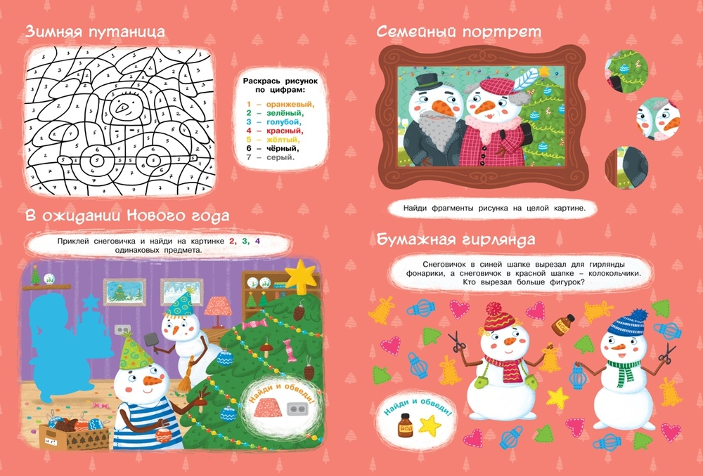 Весёлые снеговики – лучшие друзья. Каждый день они находят приключения, а их морковные носы всегда там, где есть что-то интересное. Но больше всего они любят играть. А в Новый год всегда много хлопот и без твоей помощи они не справятся. Вместе со снеговичками собери историю по картинкам, смастери игрушки из бумаги, раскрась путаницу и много-много чего ещё. В книге тебя ждут яркие наклейки, занимательные задания и красочные маски для весёлого праздника