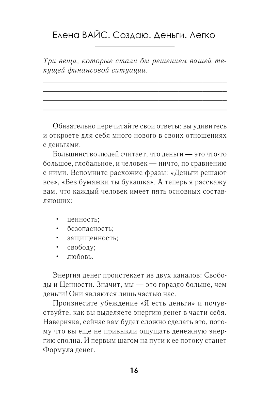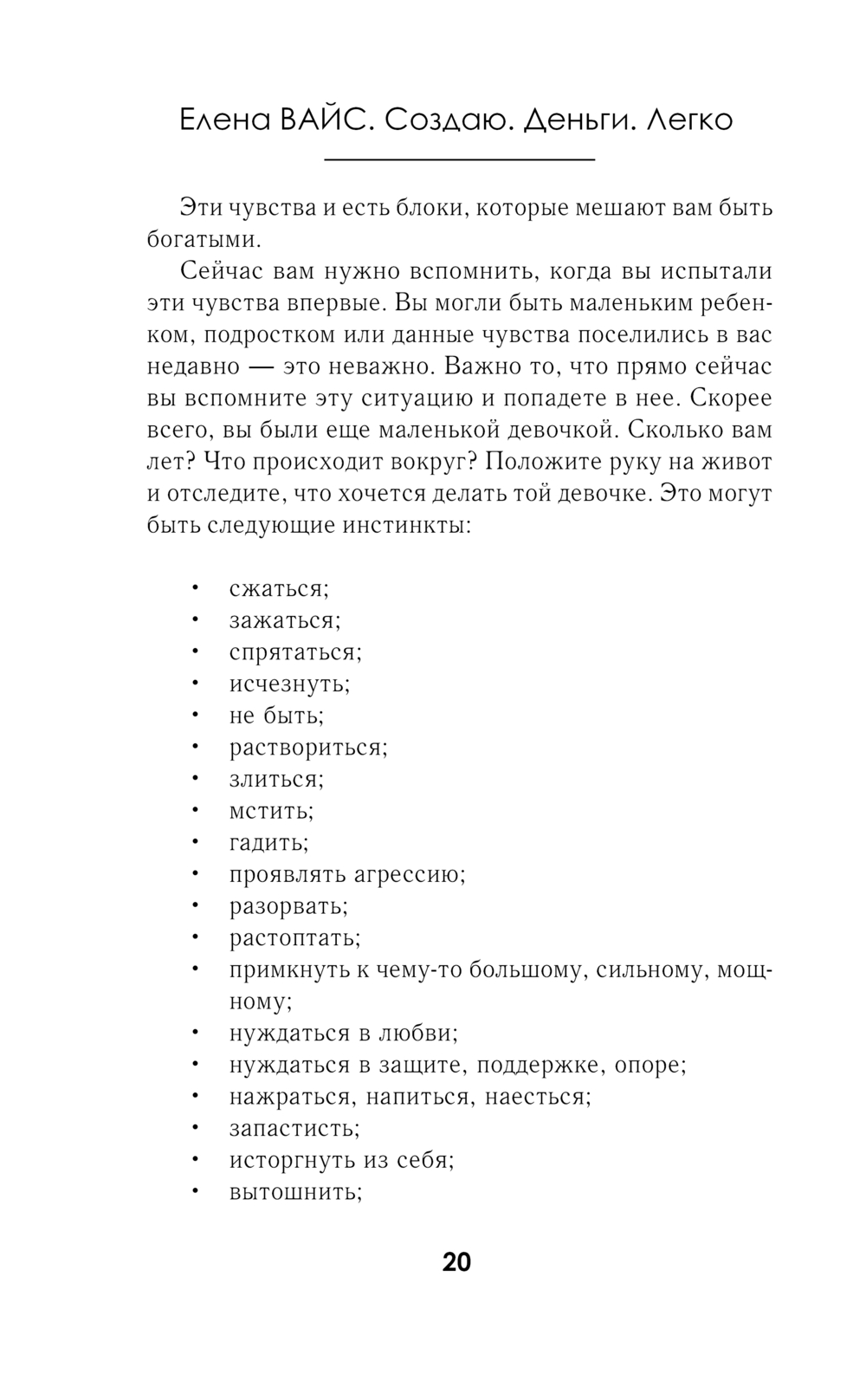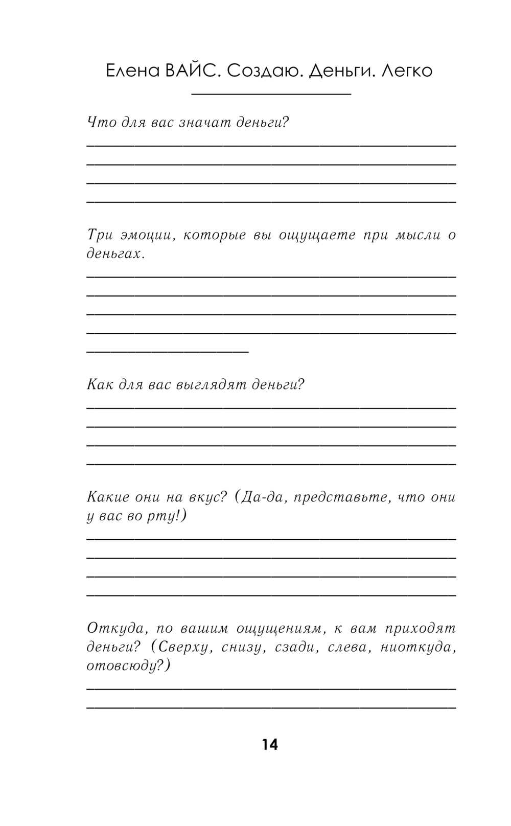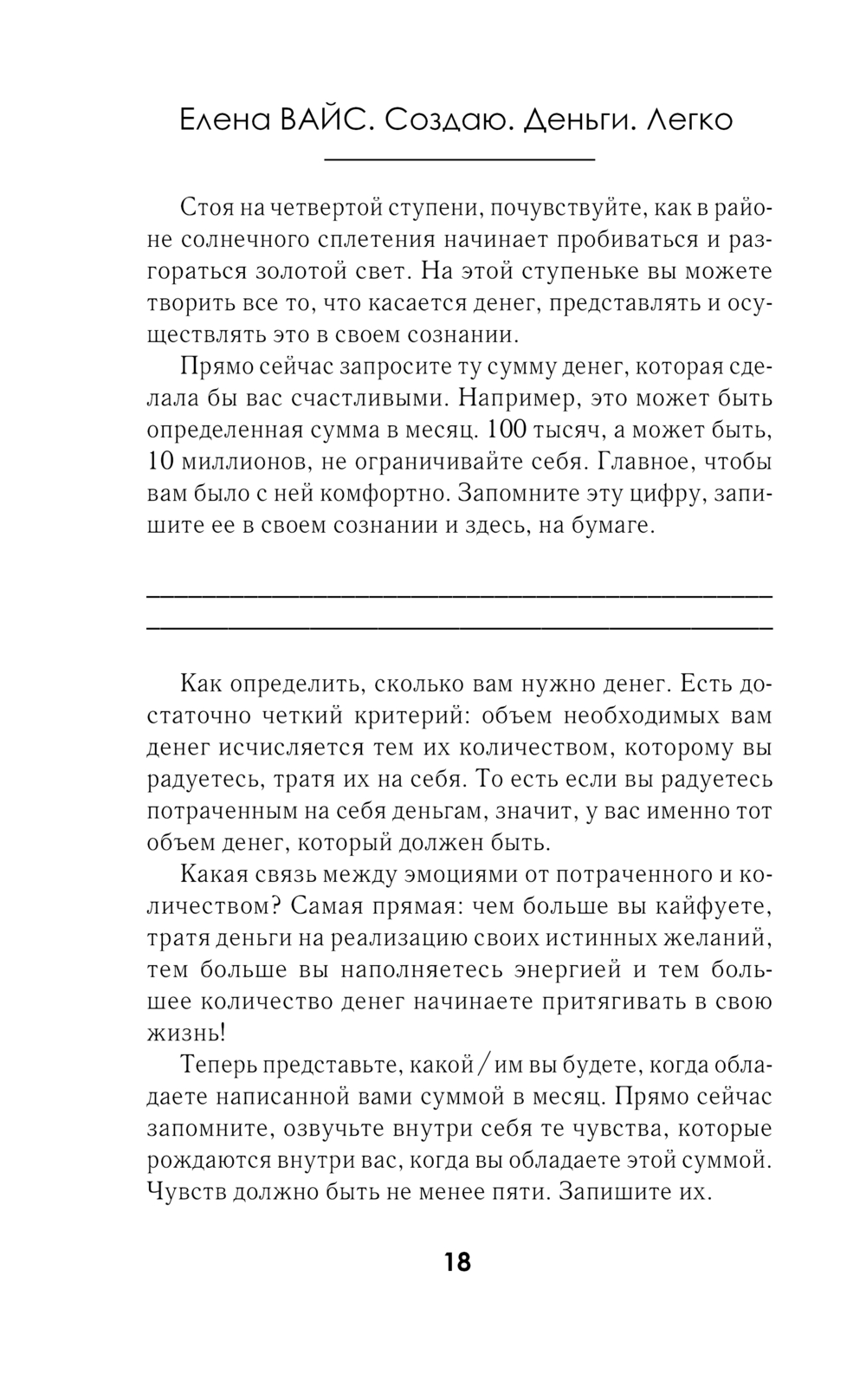 Елена Вайс – неопсихолог, основательница системы трансформации реальности PWS. Десятки тысяч последователей по всему миру. Тысячи клиентов, перешедших на новый финансовый уровень. Как стать богатой, если деньги не идут в руки, вы привыкли на всем экономить и живете от зарплаты до зарплаты? Позволить Вселенной проявить материальные блага в вашем Пространстве! Чувствуете, что хотите принимать суммы с несколькими нулями? Осознаете, что пришло время победить страх быть богатой? Освободитель от внутренних запретов, которые блокируют ваш путь к финансовому благосостоянию, через внутреннюю проработку.
