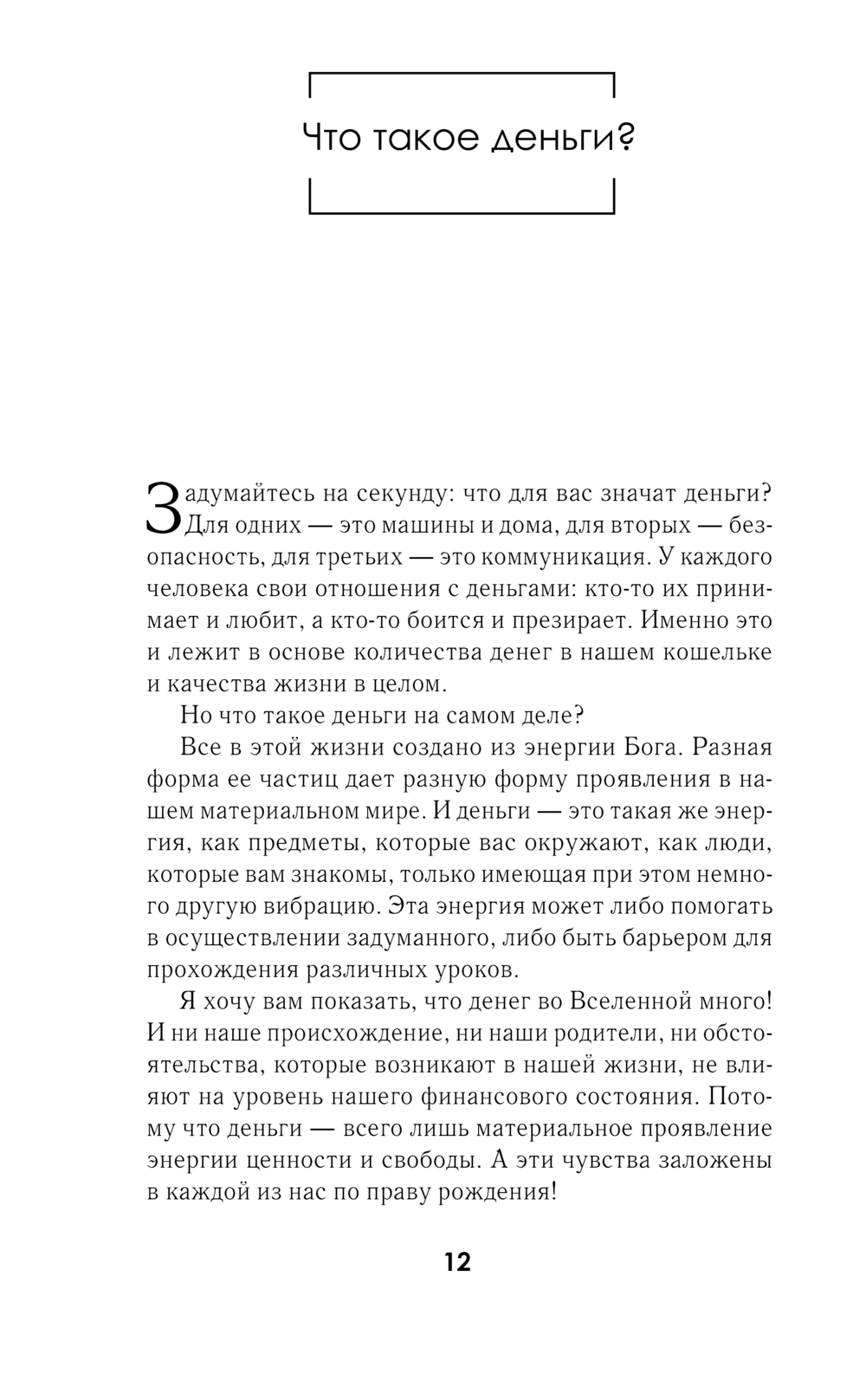 Эта книга перевернет ваше отношение к богатству и превратит вас в магнит для денег! Вы: поменяете психологию бедности на психологию богатства начнете видеть новые источники дохода почувствуете свою значимость и ценность освободитесь от негативных установок, связанных с деньгами поймете, что вы достойны большего станете транслировать энергию любви, благополучия и процветания.
