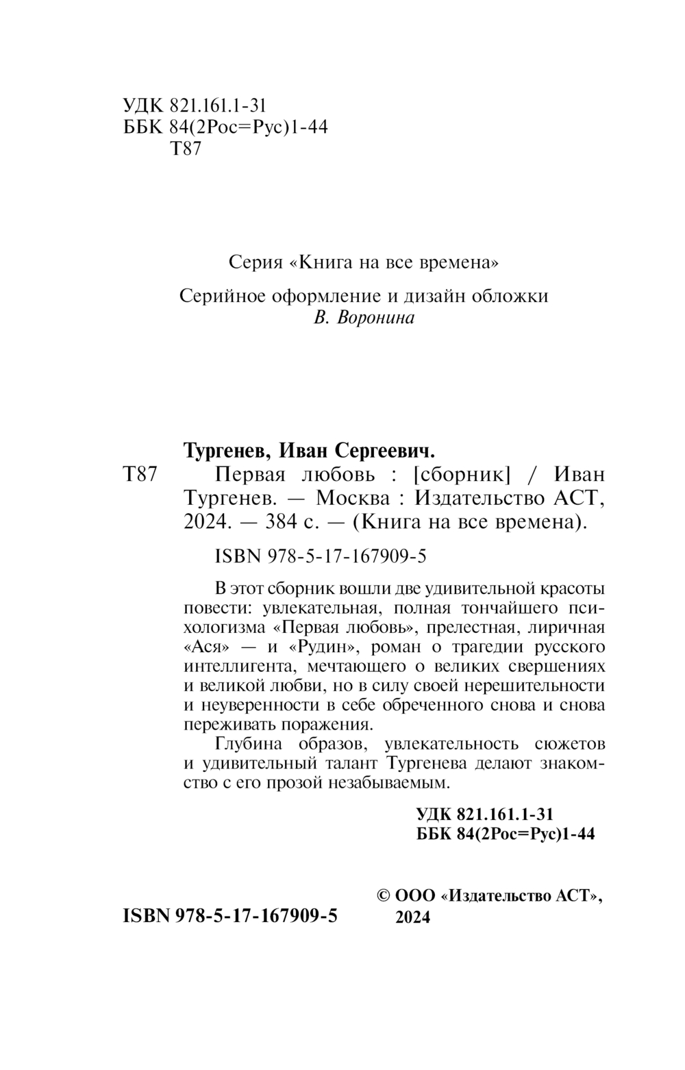 В этот сборник вошли две удивительной красоты повести: увлекательная, полная тончайшего психологизма "Первая любовь", прелестная, лиричная "Ася" – и "Рудин", роман о трагедии русского интеллигента, мечтающего о великих свершениях и великой любви, но в силу своей нерешительности и неуверенности в себе обреченного снова и снова переживать поражения.
