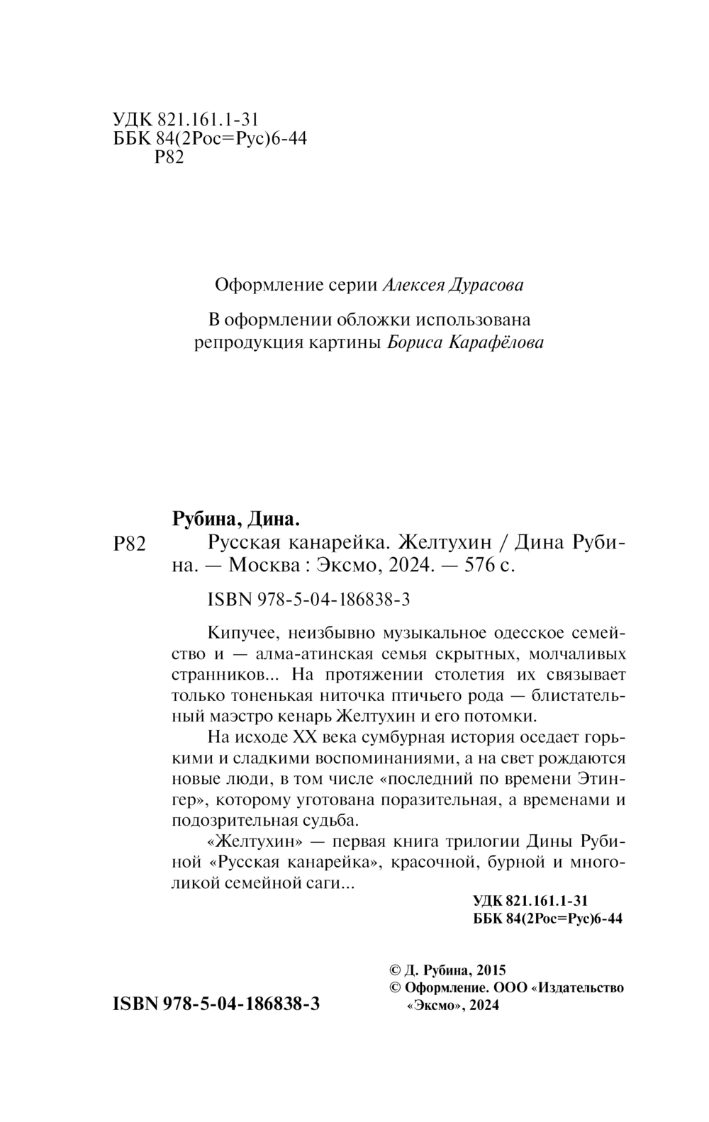 "Желтухин" – первая книга трилогии Дины Рубиной "Русская канарейка", красочной, бурной и многоликой семейной саги...