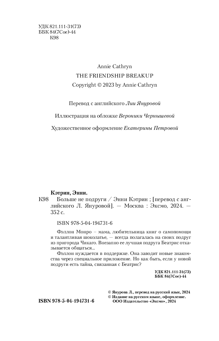 | Изготовитель | ООО «Издательство «Эксмо», Россия, 123308, город Москва, улица Зорге, дом 1, строение 1, этаж 20, каб 2013 |