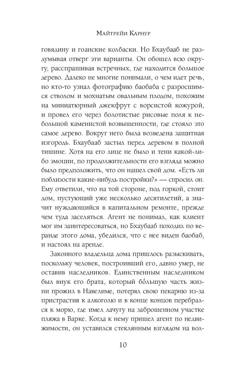 Каджетан Перейра, родившийся в Гоа, но проживший всю жизнь за его пределами – сначала в Танзании, потом в Великобритании, возвращается на землю своих предков, чтобы наконец обрести дом. Он снимает бунгало рядом с одним из самых редких и мистических деревьев – баобабом, которое напоминает ему о лучшем времени – детстве, проведенном в Танзании. Совершенно случайно о его местонахождении узнает его племянница, о существовании которой он даже не подозревал, и приезжает к нему. Казалось бы, семья воссоединилась, однако это всего лишь одно из событий в колеснице историй, собранных в романе.