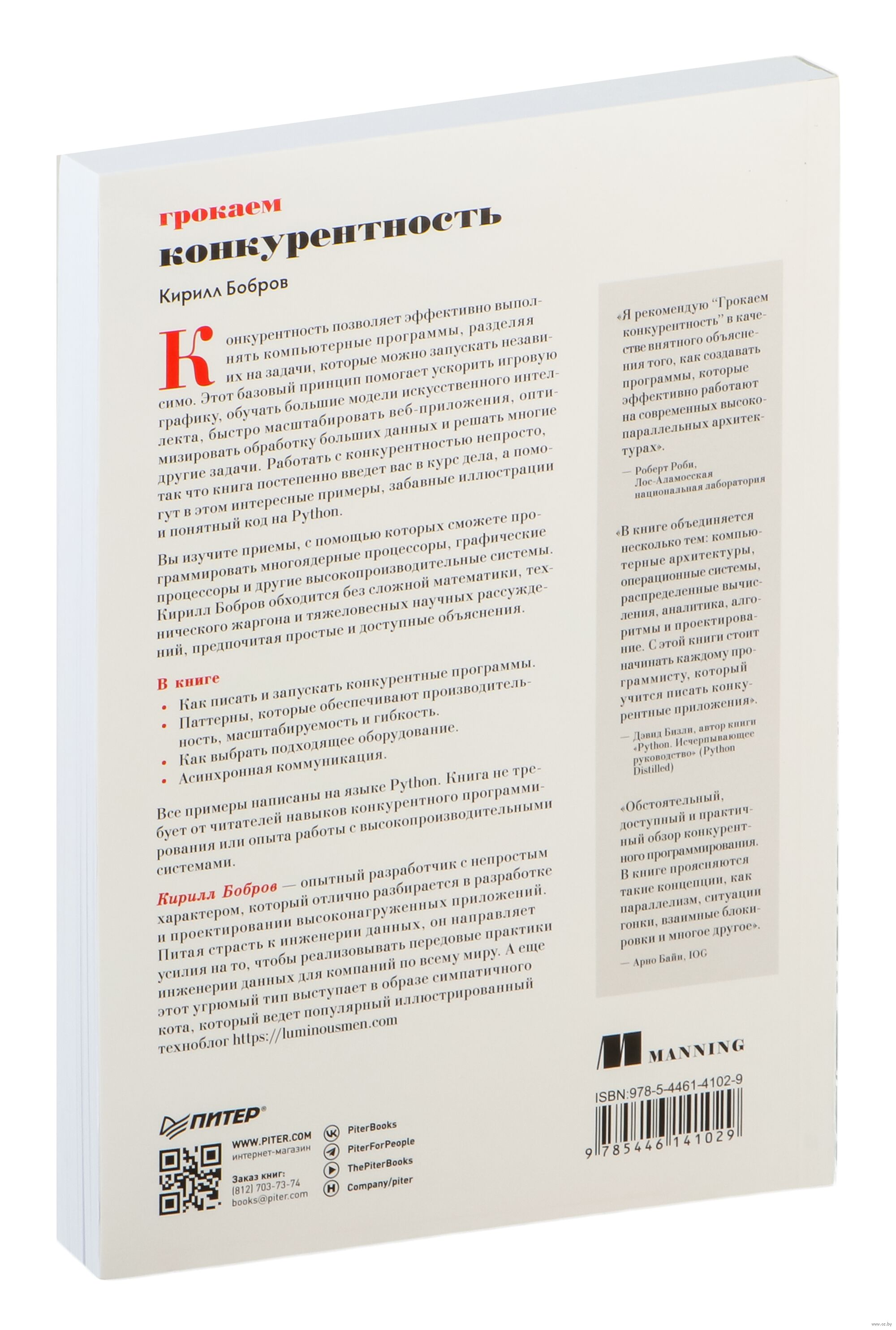 Конкурентность позволяет эффективно выполнять компьютерные программы, разделяя их на задачи, которые можно запускать независимо. Такой подход помогает ускорить игровую графику, обучать большие модели искусственного интеллекта, быстро масштабировать веб-приложения, оптимизировать обработку больших данных и решать многие другие задачи. Работать с конкурентностью непросто, так что эта книга постепенно введет вас в курс дела, а помогут в этом интересные примеры, забавные иллюстрации и понятный код на Python.