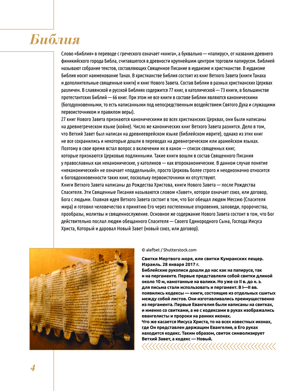 Библия – священная книга христианства, самая читаемая и пристально изучаемая в мире. Ее тексты охватывают историю взаимоотношений человека и Бога от времен сотворения мира и до первого века новой эры – Рождества Иисуса Христа, Сына Божия.
