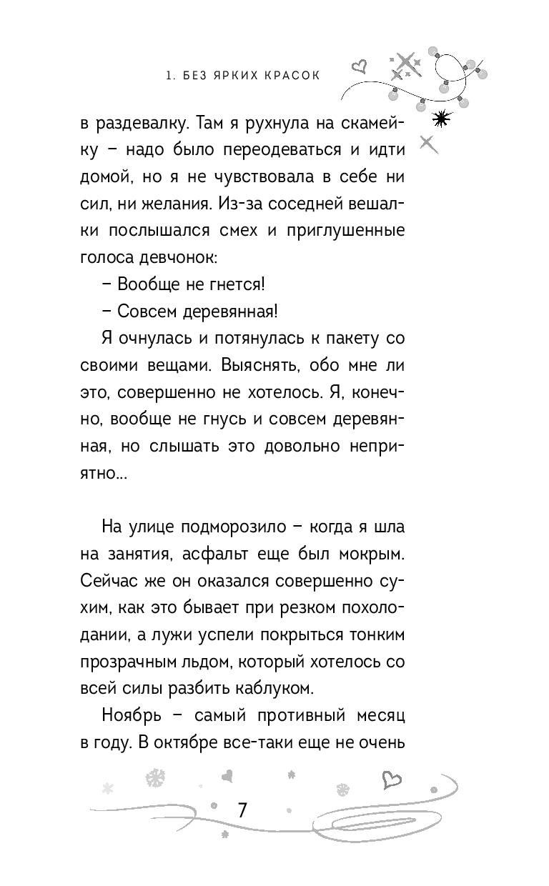 Ира не чувствовала себя счастливой. Казалось, жизнь потеряла яркие краски и вернуть их может только чудо. Учеба, занятия танцами, хор в школе... – ничего не приносит радость. Однажды вечером девушка впервые надела коньки и оказалась на льду. Она испуганно замерла у бортика, когда на помощь ей пришёл незнакомый парень. Сначала он совсем не понравился Ире, но потом... Встреча на катке стала не единственной. Любое общение с Денисом вызывало у Иры бурю эмоций. В какой-то момент девушка задумалась, как она относится к новому знакомому. Стоит ли начинать с ним встречаться? Ведь внезапно выяснилось, что Денис – не единственный парень, которому она нравится. А жизнь, оказывается, полна ярких событий!