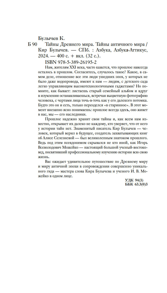 Вас ожидает удивительное путешествие по Древнему миру и миру античной эпохи в сопровождении совершенно уникального гида – мастера слова Кира Булычева и ученого И. В. Можейко в одном лице.