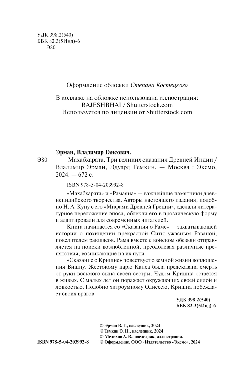 "Махабхарата" и "Рамаяна" – важнейшие памятники древнеиндийского творчества. Авторы настоящего издания, подобно Н. А. Куну с его "Мифами Древней Греции", сделали литературное переложение эпоса: облекли в прозаическую форму и адаптировали его для современных читателей.