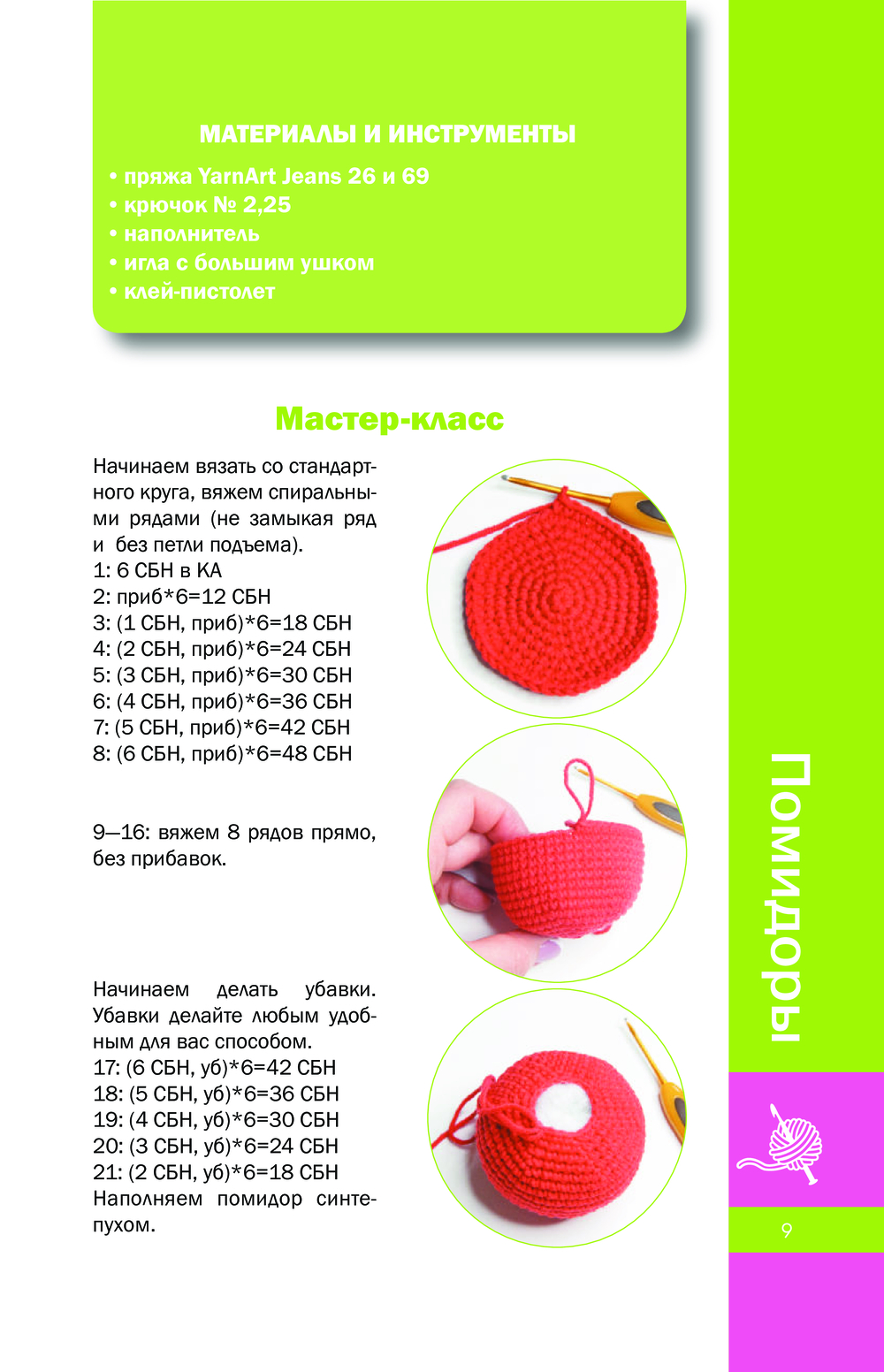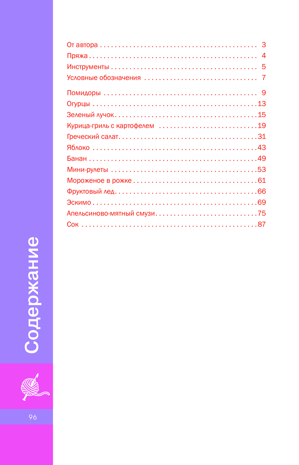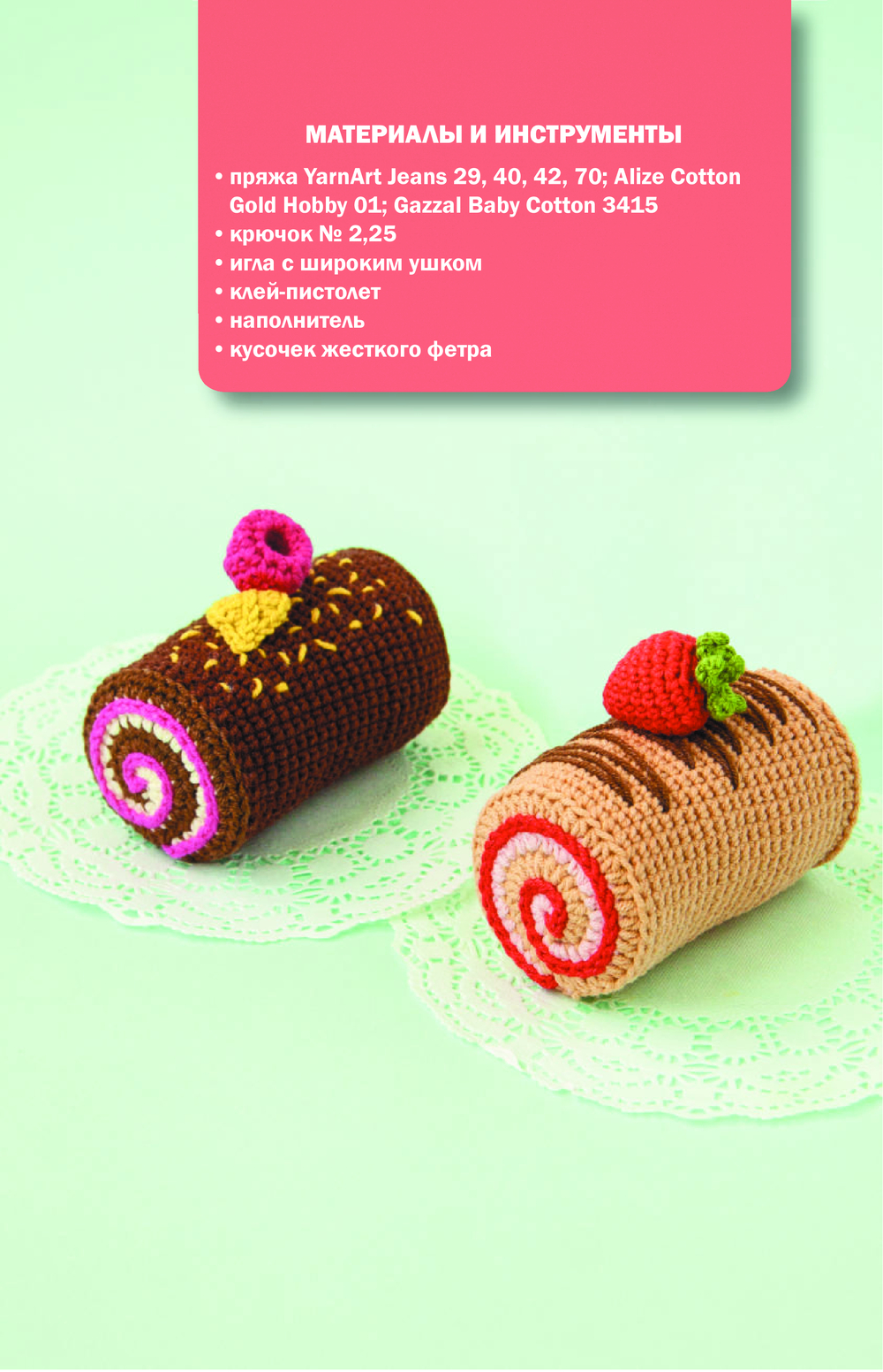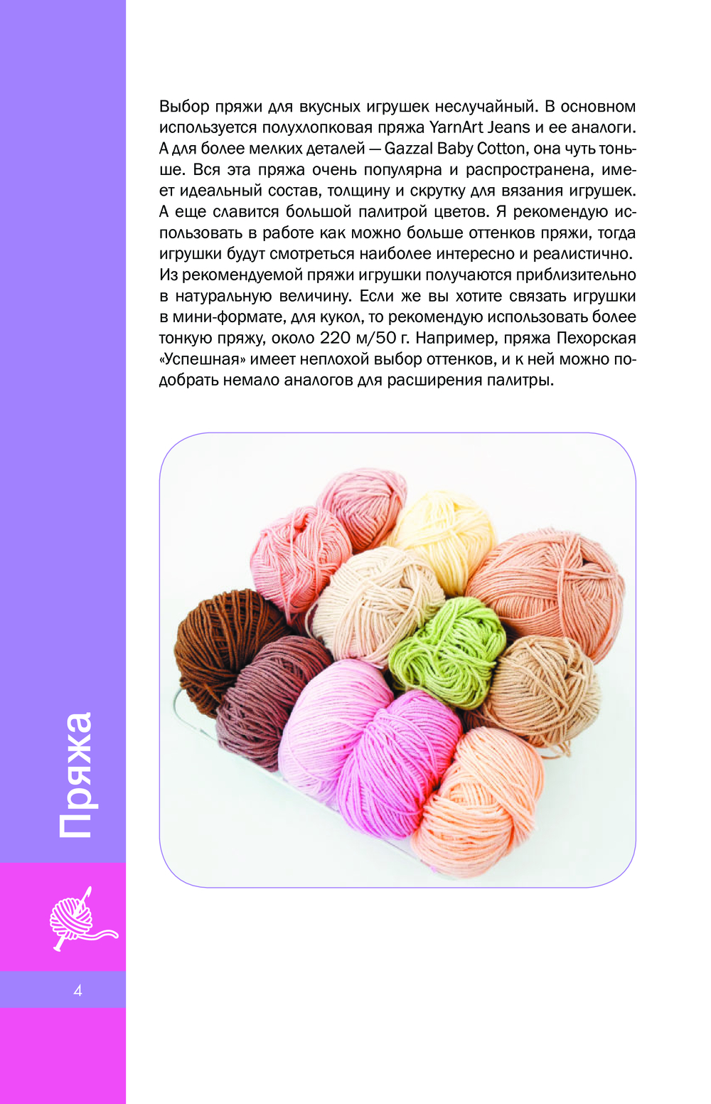 В этой книге представлено 13 мастер-классов по вязанию игрушечной еды в стиле амигуруми. Вы сможете связать: помидоры, огурцы, зеленый лучок, курицу-гриль с картофелем, греческий салат, яблоко, банан, сладкие мини-рулеты, 3 вида мороженого, апельсиново-мятный смузи, сок. В этом вам помогут подробные описания этапов вязания и пошаговые фотографии.