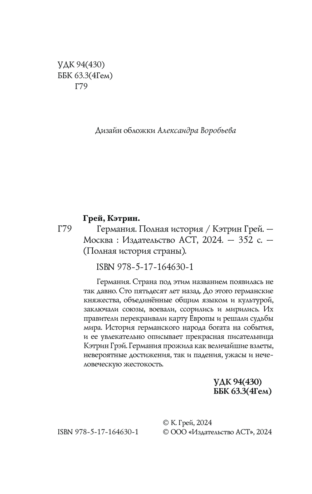 Германия. Страна под этим названием появилась не так давно. Сто пятьдесят лет назад. До этого германские княжества, объединённые общим языком и культурой, заключали союзы, воевали, ссорились и мирились. Их правители перекраивали карту Европы и решали судьбы мира. История германского народа богата на события, и ее увлекательно описывает прекрасная писательница Кэтрин Грэй. Германия прожила как величайшие взлеты, невероятные достижения, так и падения, ужасы и нечеловеческую жестокость.