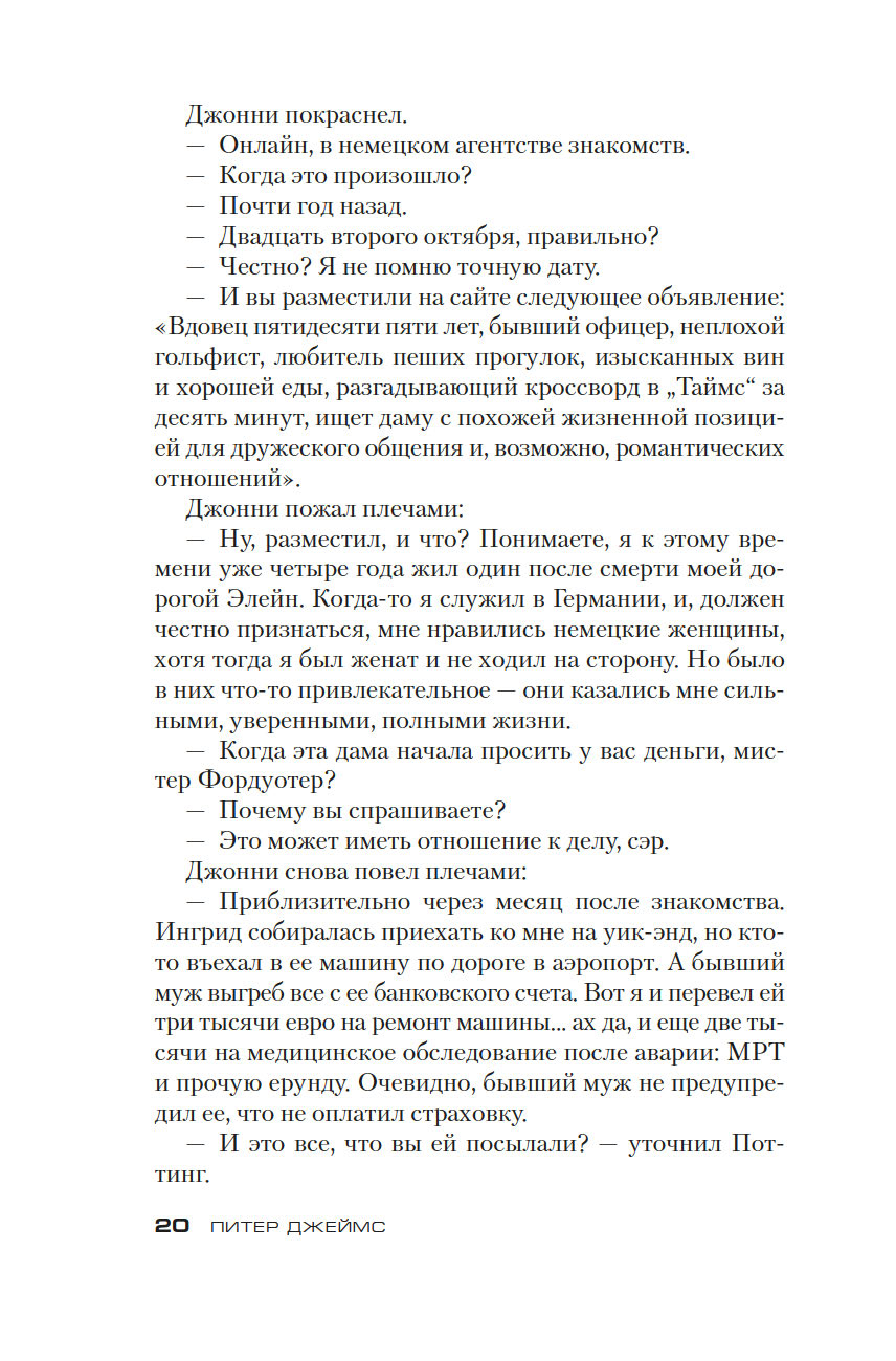 Мошенничество в Интернете приобрело небывалый размах, превратившись в настоящую эпидемию. Детектив-суперинтендант Рой Грейс сталкивается с бандой хитроумных аферистов, орудующих на сайтах агентств знакомств по всему миру. Каково это – узнать, что человек, в которого ты влюбился, совсем не тот, за кого себя выдает, да вдобавок еще и лишиться всех своих накоплений и оказаться на улице? В полиции вынуждены признать, что шансы вернуть потерянное практически равны нулю, однако не все жертвы готовы смириться с тем, что их обманули. В игру вступают мстители, которые действуют своими методами и порой откровенно мешают служителям правопорядка. Кто первым доберется до цели? Ситуация осложняется еще и тем, что в Суссексе вновь объявился старый знакомый Грейса, неуловимый американский киллер по кличке Зуб...