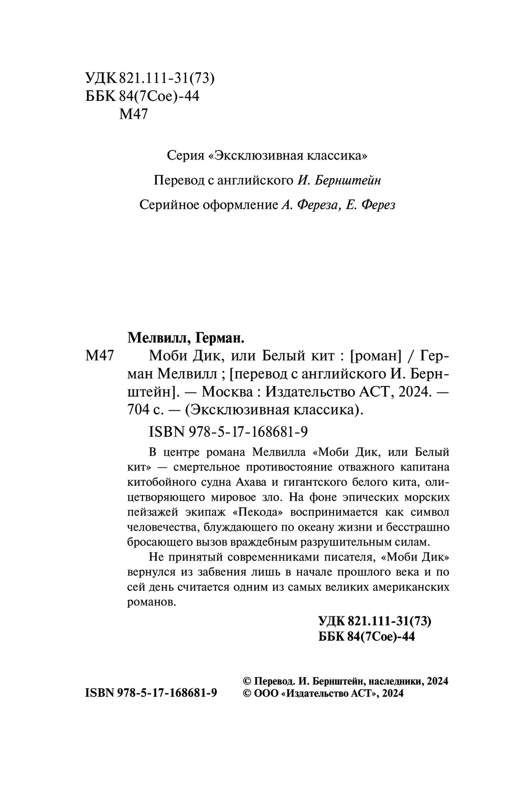 Не принятый современниками писателя, "Моби Дик" вернулся из забвения лишь в начале прошлого века и по сей день считается одним из самых великих американских романов.