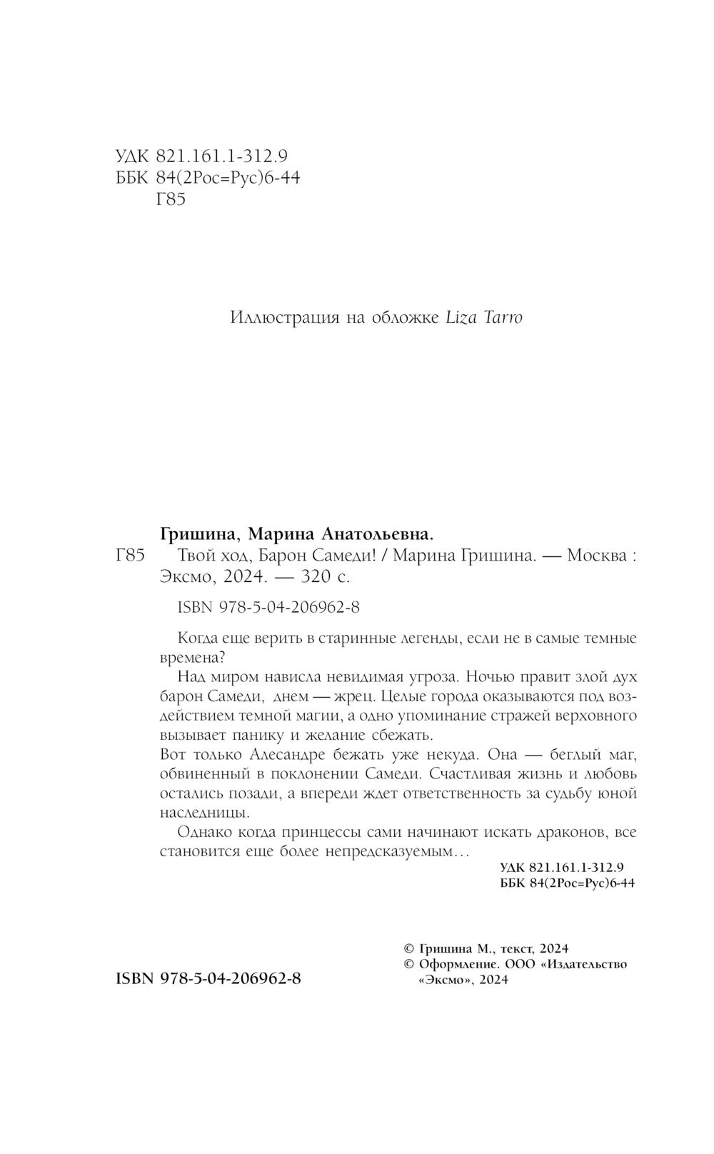 | Изготовитель | ООО «Издательство «Эксмо». РФ, г. Москва, ул. Клары Цеткин, 18, корп. 5 |