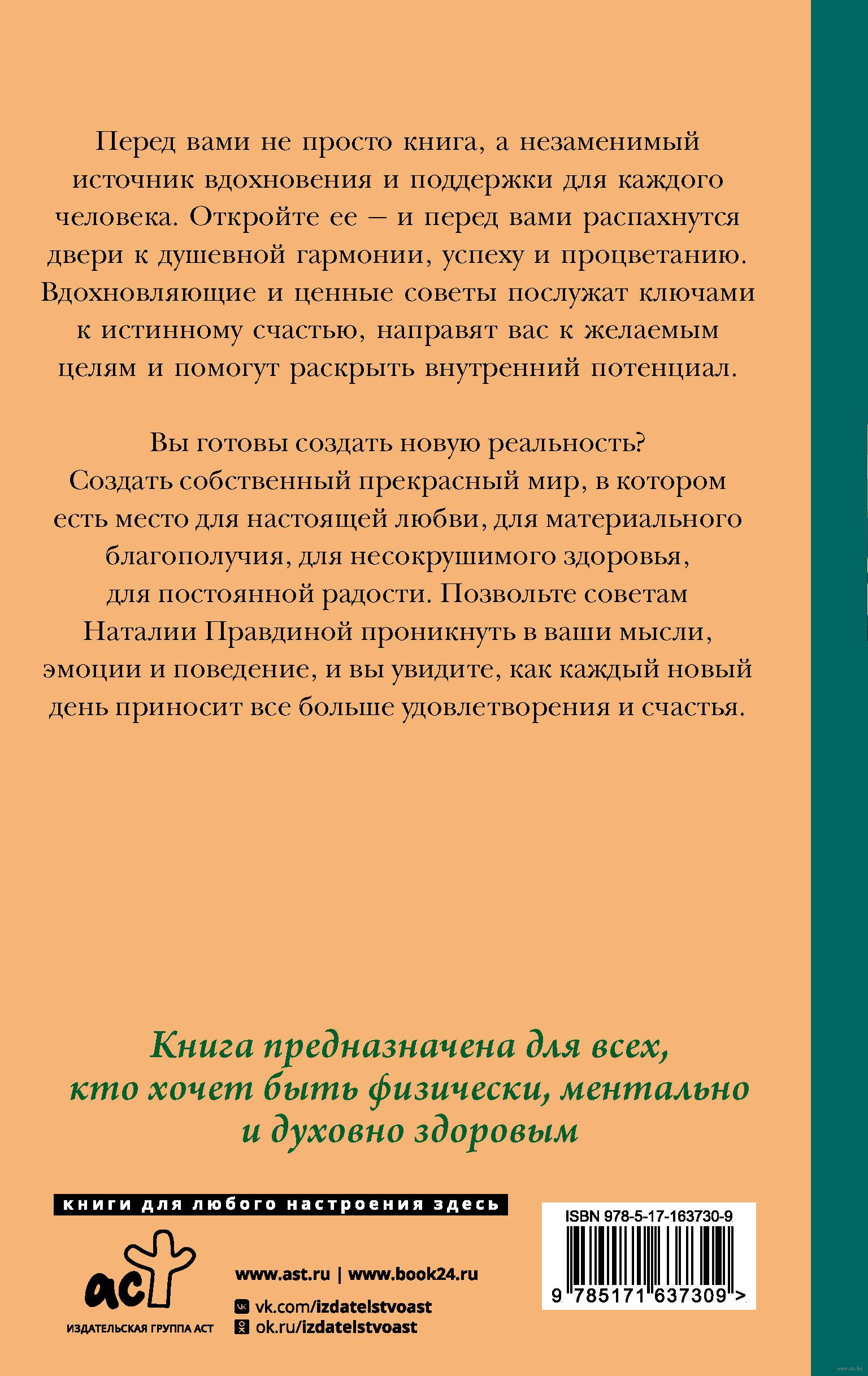 Вы готовы создать новую реальность? Создать собственный прекрасный мир, в котором есть место для настоящей любви, для материального благополучия, для несокрушимого здоровья, для постоянной радости. Позвольте советам Наталии Правдиной проникнуть в ваши мысли, эмоции и поведение, и вы увидите, как каждый новый день приносит все больше удовлетворения и счастья.