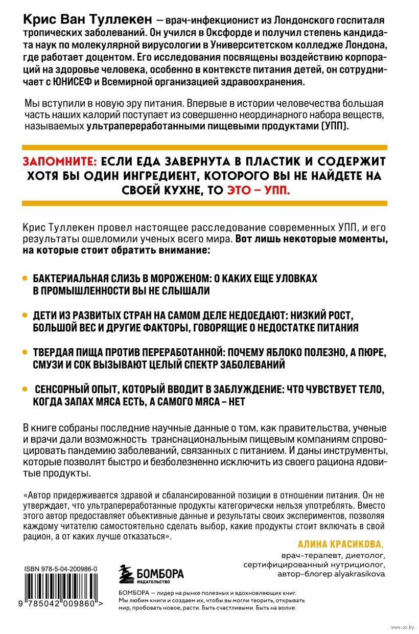 Любая дискуссия о лишнем весе – что в прессе, что у нас в головах, – неизбежно перерастает в обвинения, а эти обвинения всегда направлены на людей, которые с ним живут. Идея, что толстяки сами во всем виноваты, сумела пробраться и через научный, и через моральный фильтры, потому что проста до прозрачности. Она основана на якобы недостатке силы воли – человек "просто" недостаточно двигается или слишком много ест. Но на самом деле эта идея никак не связана с реальностью. В своем мировом бестселлере Крис убедительно доказывает, как промышленная еда и еда, "загримированная" под здоровую, меняет настройки нашего организма, влияет на мозговые связи и фактически делает нас зависимыми от еды, заставляя потреблять все больше и больше вредных продуктов.