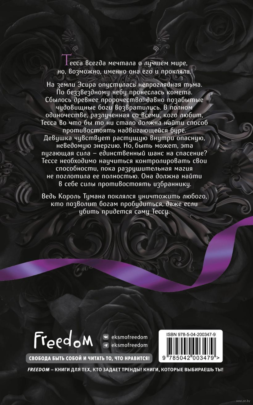 На земли Эсира опустилась непроглядная тьма. По беззвездному небу пронеслась комета. Сбылось древнее пророчество: давно позабытые чудовищные боги возвратились. В полном одиночестве, разлученная со всеми, кого любит, Тесса во что бы то ни стало должна найти способ противостоять надвигающейся буре. Девушка чувствует растущую внутри опасную, неведомую энергию. Но, быть может, эта пугающая сила – единственный шанс на спасение? Тессе необходимо научиться контролировать свои способности, пока разрушительная магия не поглотила ее полностью. Она должна найти в себе силы противостоять любимому. Ведь Король Тумана поклялся уничтожить любого, кто позволит богам пробудиться, даже если убить придется саму Тессу.