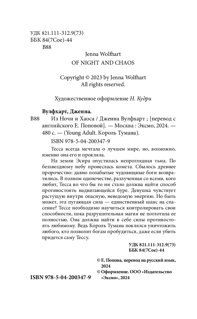 | Название в оригинале | Of Night and Chaos by Jenna Wolfhart |