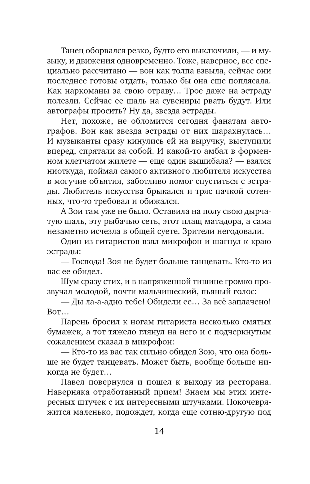 Рыжая оглобля в красных кожаных шортах за стойкой бара, танцовщица в ресторане казино, топ-модель, вышедшая из подъезда старой пятиэтажки во двор как на подиум, свирепая тренерша "жирных тётьков" в фитнес-клубе... Люди так мало знают о тех, кто рядом. Четыре года назад Зоя осталась одна, в один миг потеряв родителей и старшего брата, и поклялась себе заменить племянникам мать. Она хватается за любую работу, в свои двадцать три года искренне считая, что молодость уже прошла, и теперь главная ее цель – обеспечить будущее детей и отдать долги тем, кто помог ей выжить.