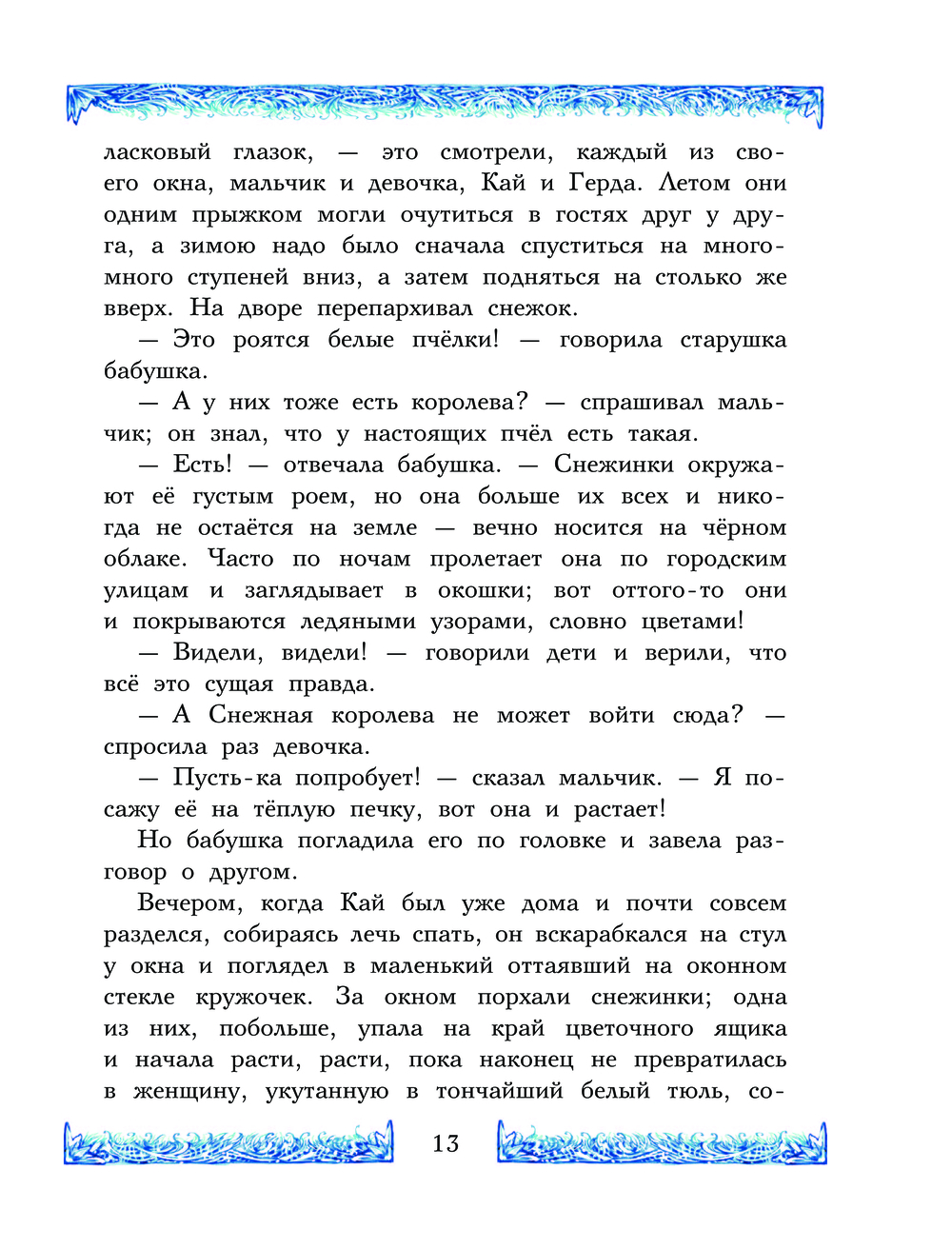 В книгу вошли три мировых литературных шедевра классической детской литературы: "Снежная королева" Х. К. Андерсена, "Синяя Птица" М. Метерлинка и "Щелкунчик и мышиный король" Э. Т. А. Гофмана. Главные герои этих сказок – дети. Кай и Герда, Тильтиль и Митиль, Мари и Щелкунчик – всем им предстоят небывалые сказочные приключения: добраться до покоев самой Снежной королевы и освободить Кая, отыскать Синюю Птицу, чтобы спасти умирающую девочку, сразиться с семиглавым мышиным королём и его войском. Но наши герои не из робкого десятка, а это значит, что они смело идут вперёд и не боятся выпавших на их долю испытаний.