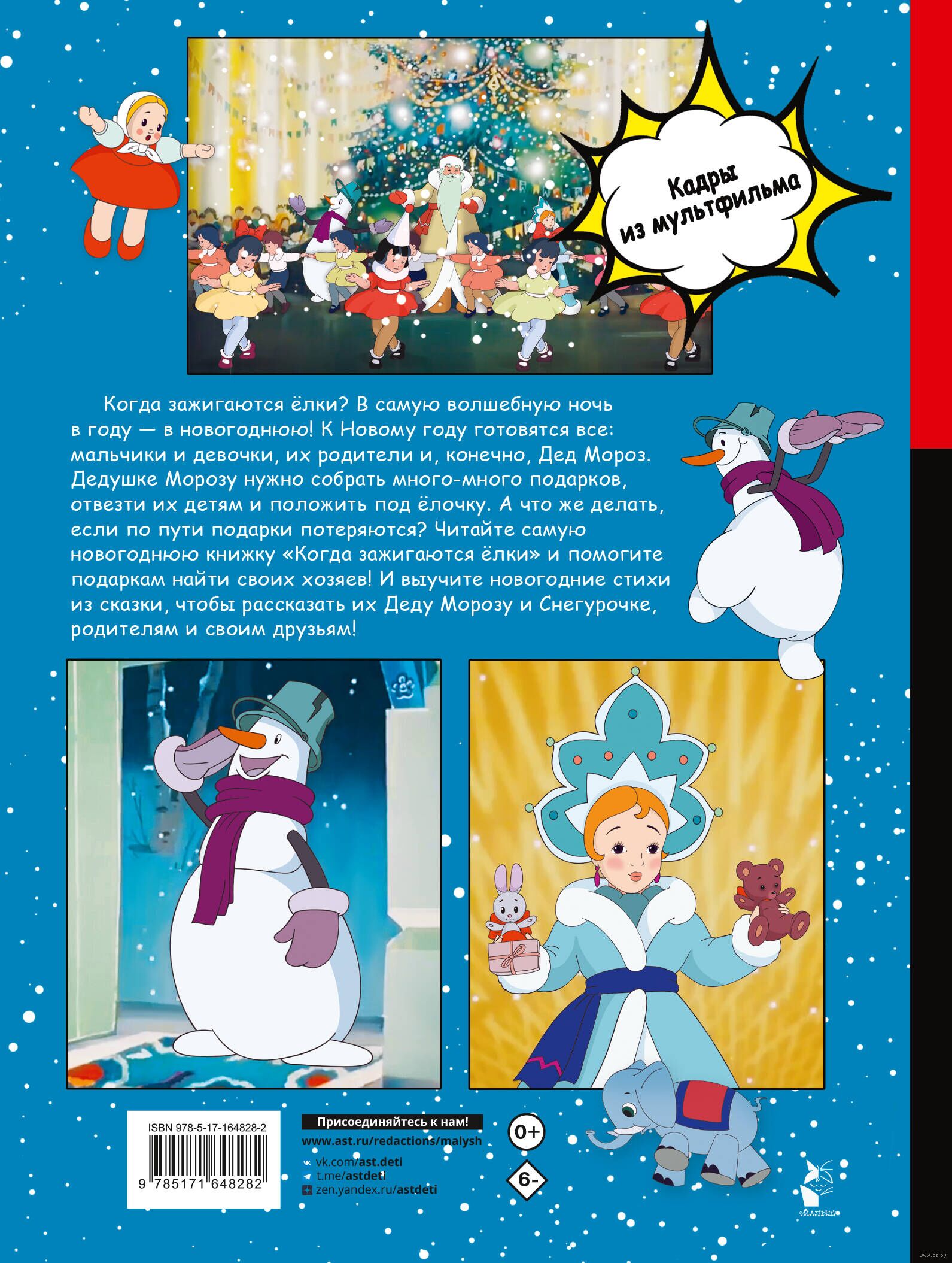 Когда за окном тихо падает снег, когда за окном темным-темно, а на небе ярко сияют звёзды, когда ожидаешь какого-то чуда, тогда во всех домах зажигаются праздничные новогодние ёлки, и ребята гадают, какой же подарок в этом году преподнесёт им добрый волшебник – Дед Мороз. Читайте книгу по сказке В. Сутеева "Когда зажигаются ёлки" и рассматривайте великолепные картинки из знаменитого одноимённого мультфильма.