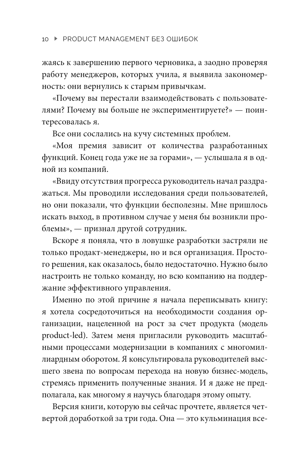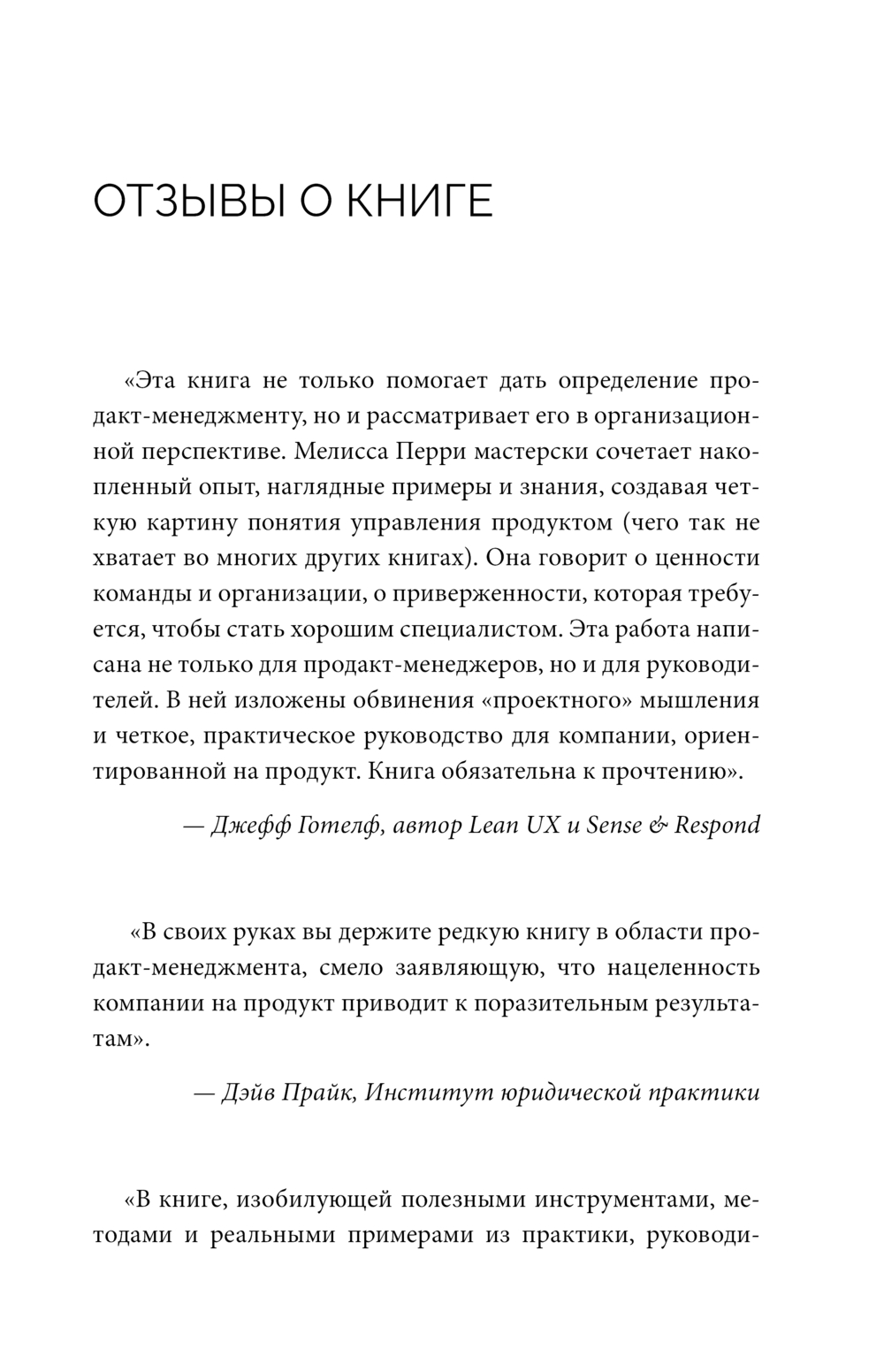 Чтобы оставаться конкурентоспособными на современном рынке, организациям необходимо внедрять культуру клиентоориентированных практик, нацеленных на конечный продукт и его ценность, а не на фактические показатели. Компании нередко попадают в ловушку, разрабатывая функции в соответствии с графиком, а не с потребностями клиентов. Понимая, как правильно взаимодействовать в рамках структуры компании, вы сможете создать продуктовую культуру, которая принесет пользу не только бизнесу, но и клиентам. Вы узнаете главные принципы управления и сможете применять их в любой организации – как крупной, так и небольшой.