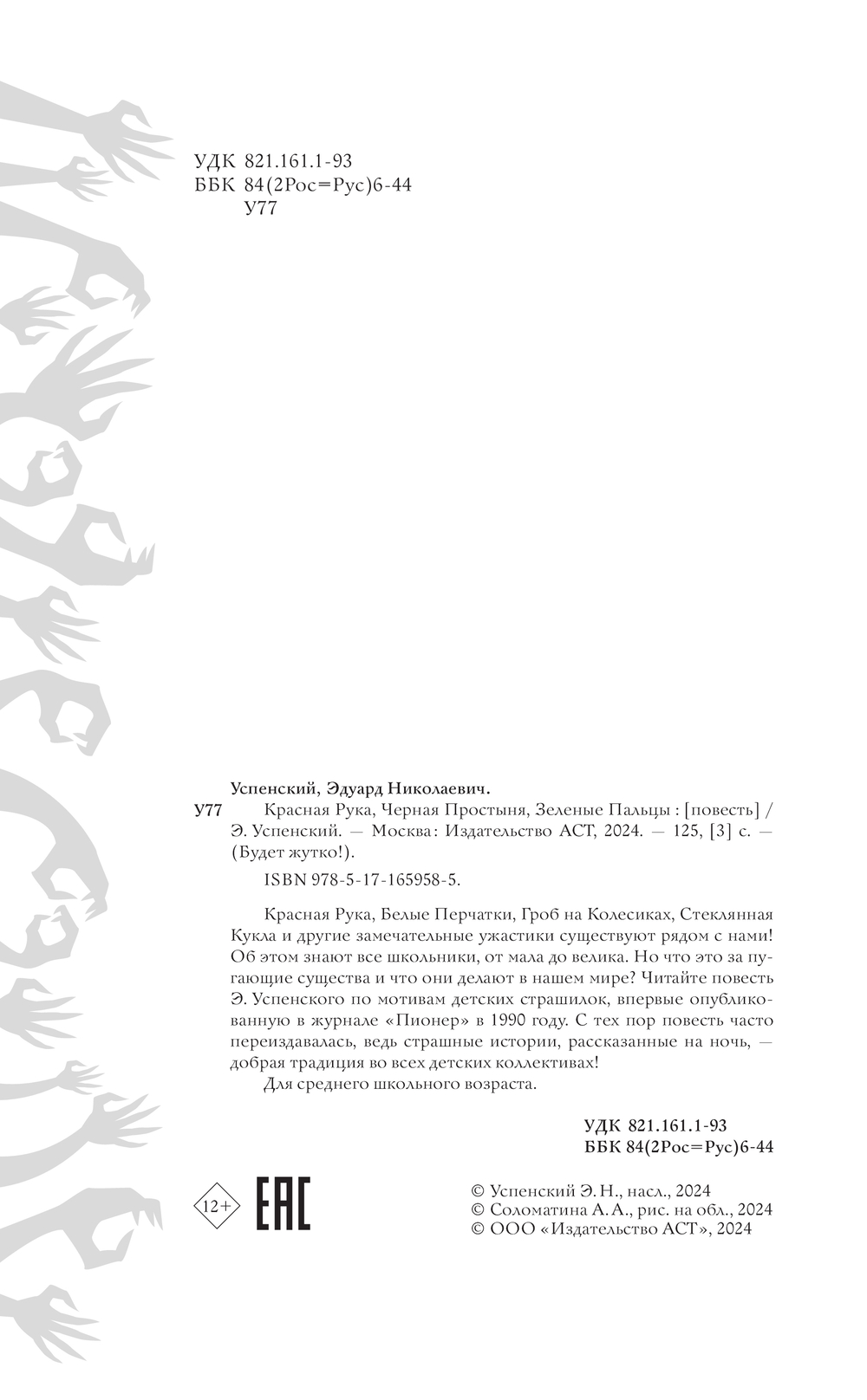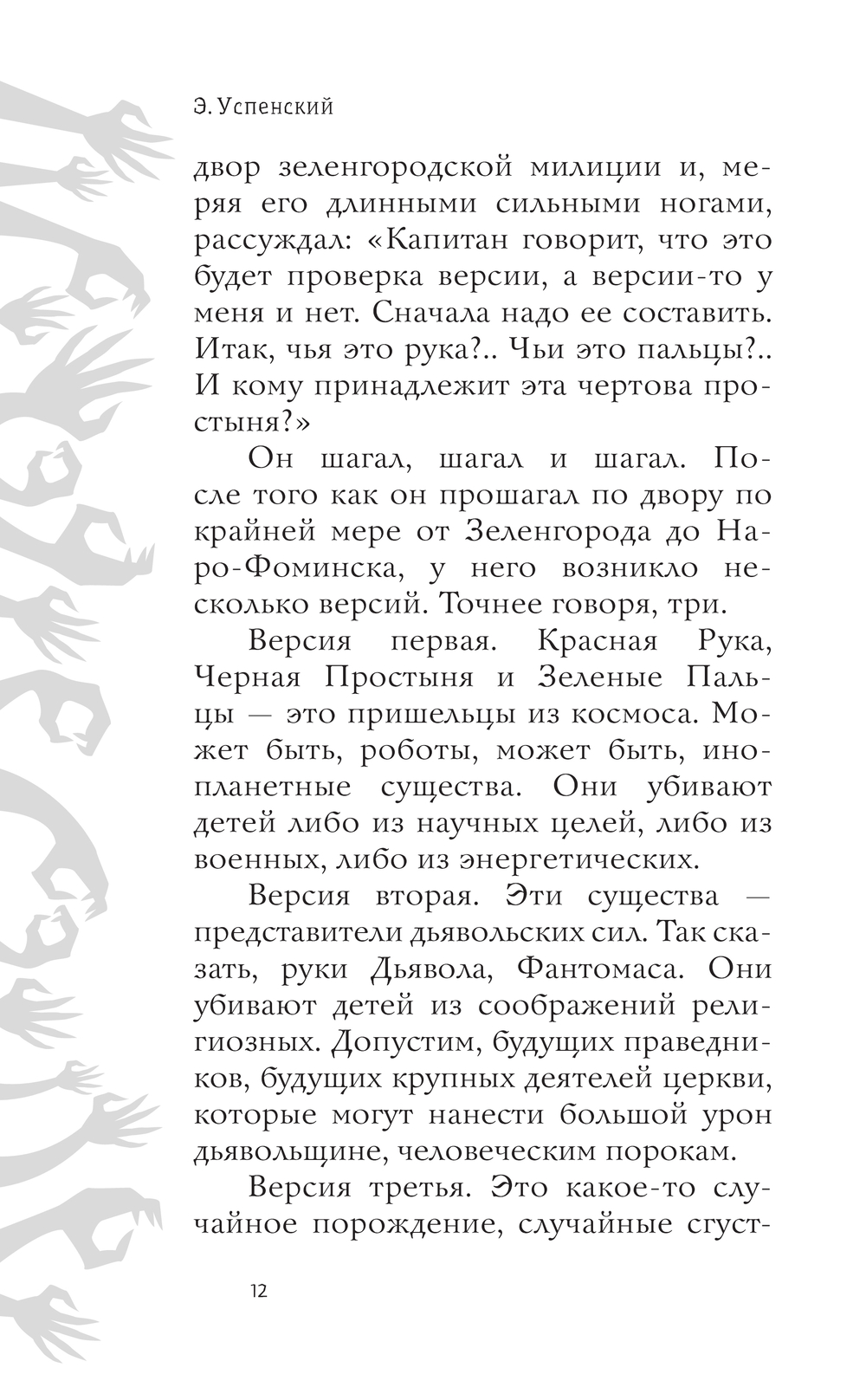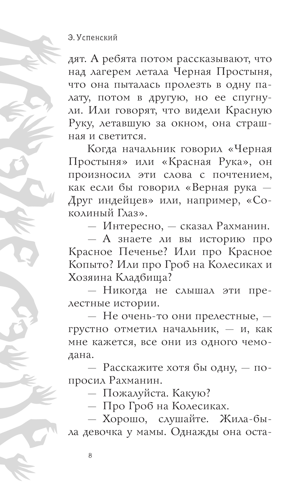 Об этом знают все школьники, от мала до велика. Но что это за пугающие существа и что они делают в нашем мире? Читайте повесть Э. Успенского по мотивам детских страшилок, впервые опубликованную в журнале «Пионер» в 1990 году. С тех пор повесть часто переиздавалась, ведь страшные истории, рассказанные на ночь, – добрая традиция во всех детских коллективах!