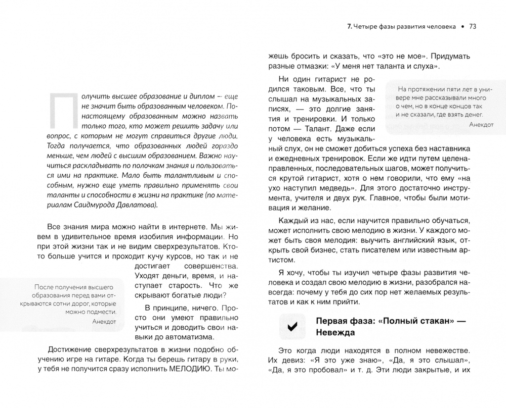 С помощью этого подхода материал усваивается быстрее, а прочитанная информация внедряется в жизнь читателя и остается в его памяти навсегда.