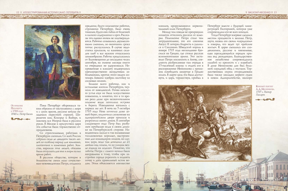 Книга русского писателя, журналиста, издателя газеты "Санкт-Петербургские ведомости" Василия Авсеенко (1842-1913) была выпущена в 1903 году к юбилею Санкт-Петербурга.