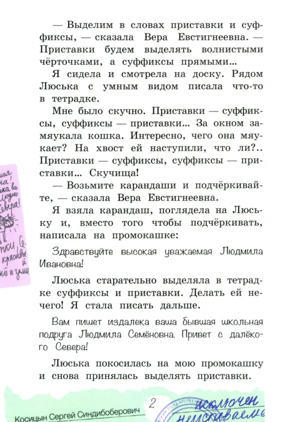 Рассказ Ирины Пивоваровой «Привет с далёкого Севера!» один из самых весёлых рассказов цикла про Люсю Синицину.