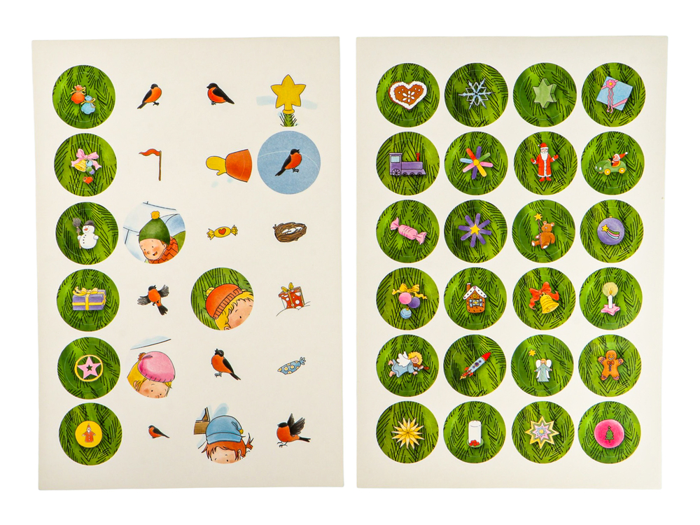 Эта новогодняя игра для детей от года сделает досуг с ребенком необычным и увлекательным. За несколько дней до Нового года повесьте плакат на стену и каждый день добавляйте вместе с малышом наклейки-игрушки на елку так, чтобы к празднику она была украшена вся.