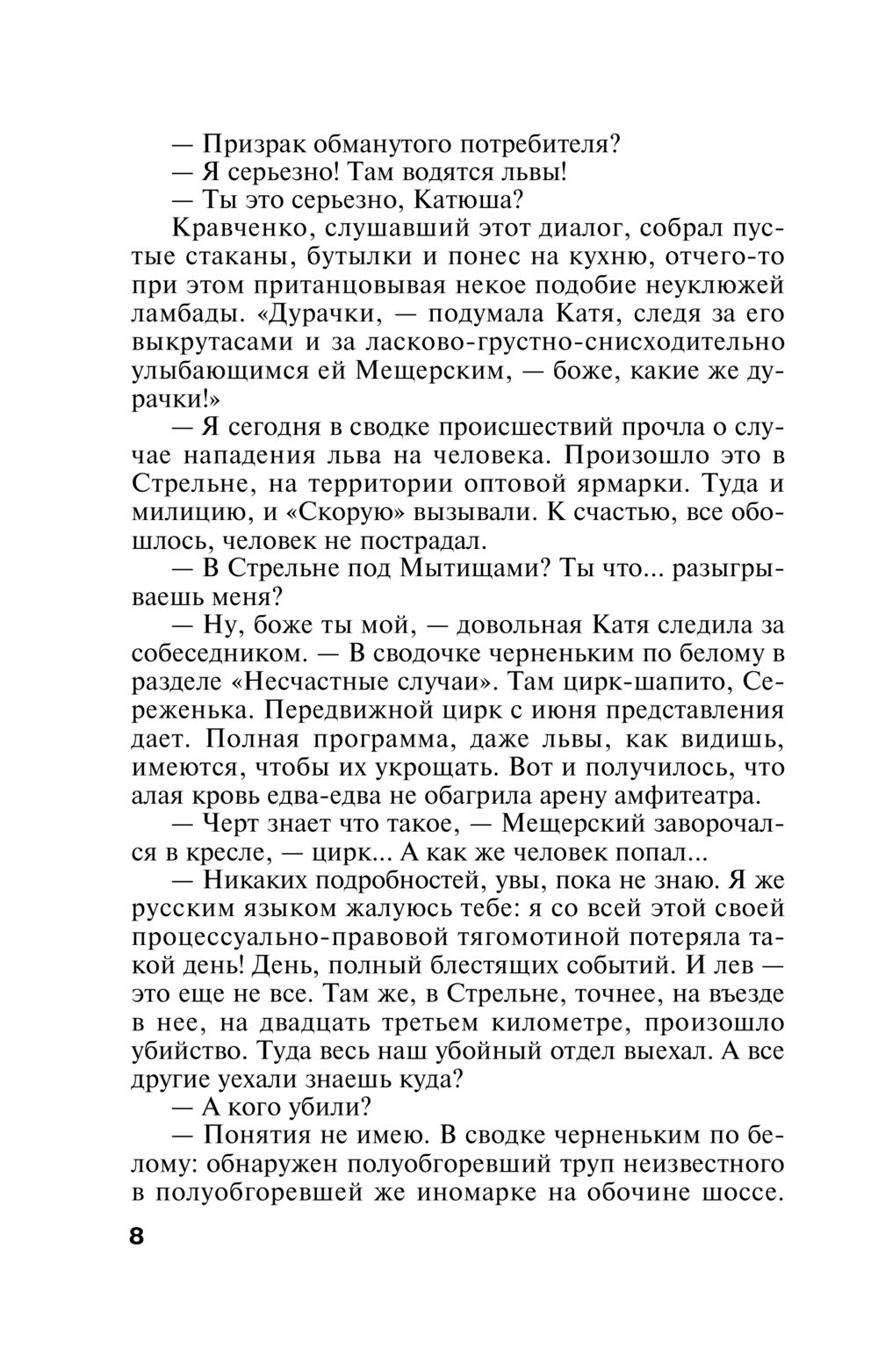 Кто страшнее – жестокий убийца или мрачный некрофил, оскверняющий могилы женщин? А именно перед таким выбором оказывается журналистка Катя Петровская, ведущая собственное расследование ряда загадочных убийств в цирке-шапито, гастролирующем по Подмосковью. И она, и начальник "убойного отдела" Никита Колосов словно бредут по сумрачному лабиринту человеческих страстей, темных инстинктов и вожделений. Здесь все невероятно и зыбко... А ошибиться нельзя, слишком высока плата за неверный шаг – очередная смерть...
