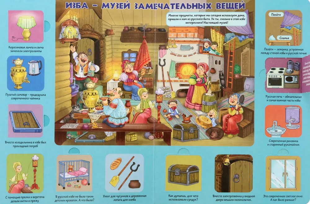 Это познавательная мини-энциклопедия для маленьких почемучек, которые задают миллион вопросов об окружающих их вещах. Мы расскажем о первых изобретателях-древних людях, побываем в музее русского быта, изучим предметы в швейной мастерской, поговорим о секретах любимых лакомств. Потом оглянемся вокруг и обнаружим ещё множество простых предметов, у каждого из которых есть своя маленькая тайна.