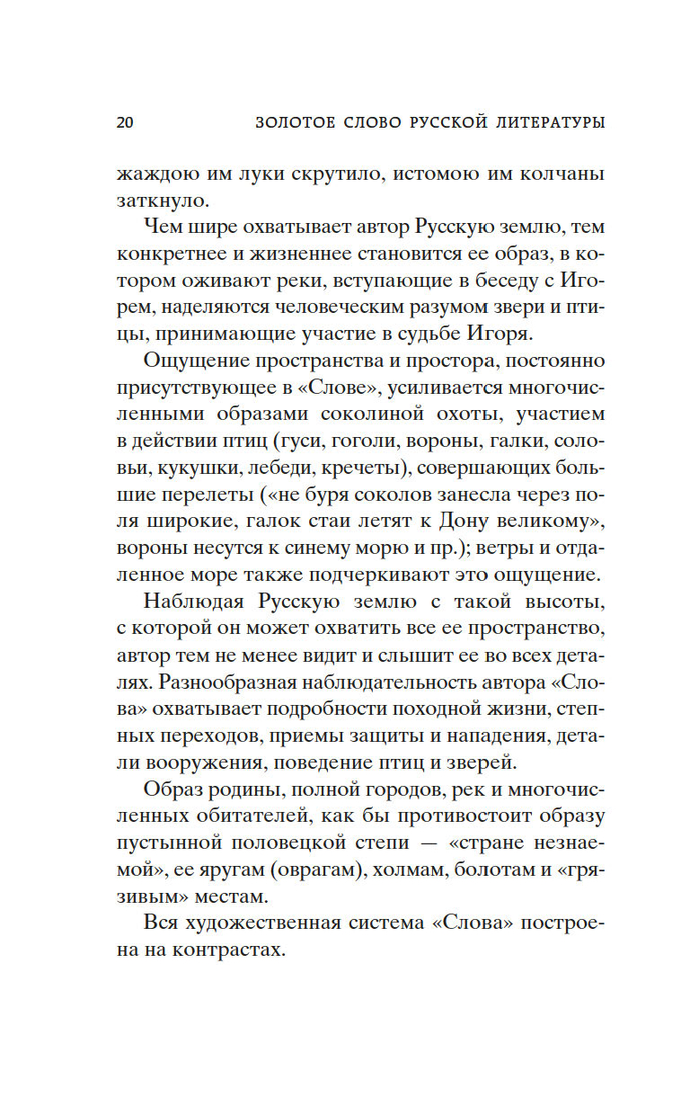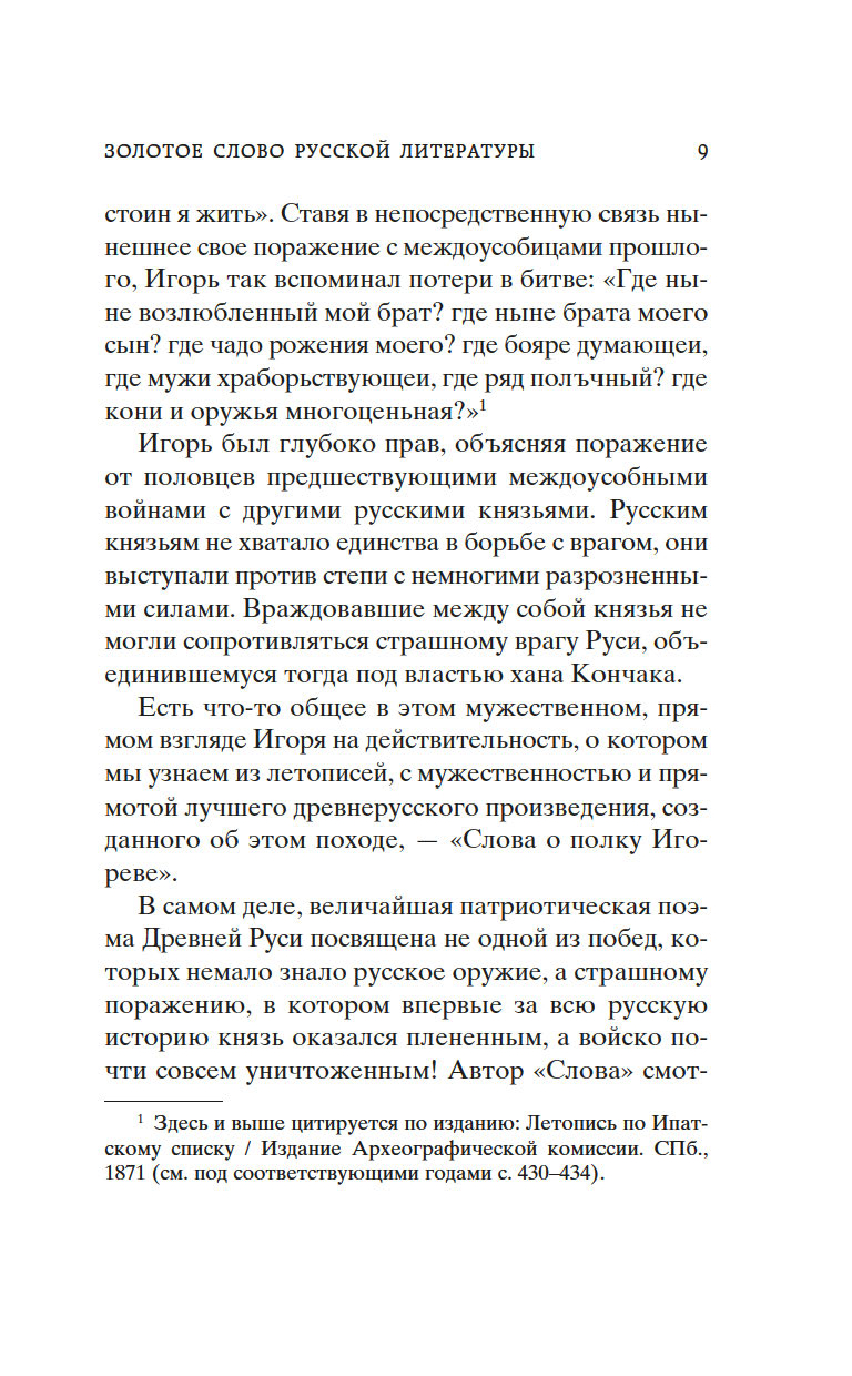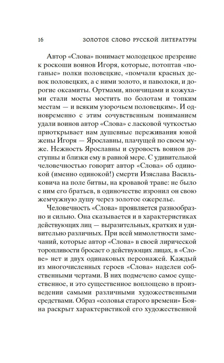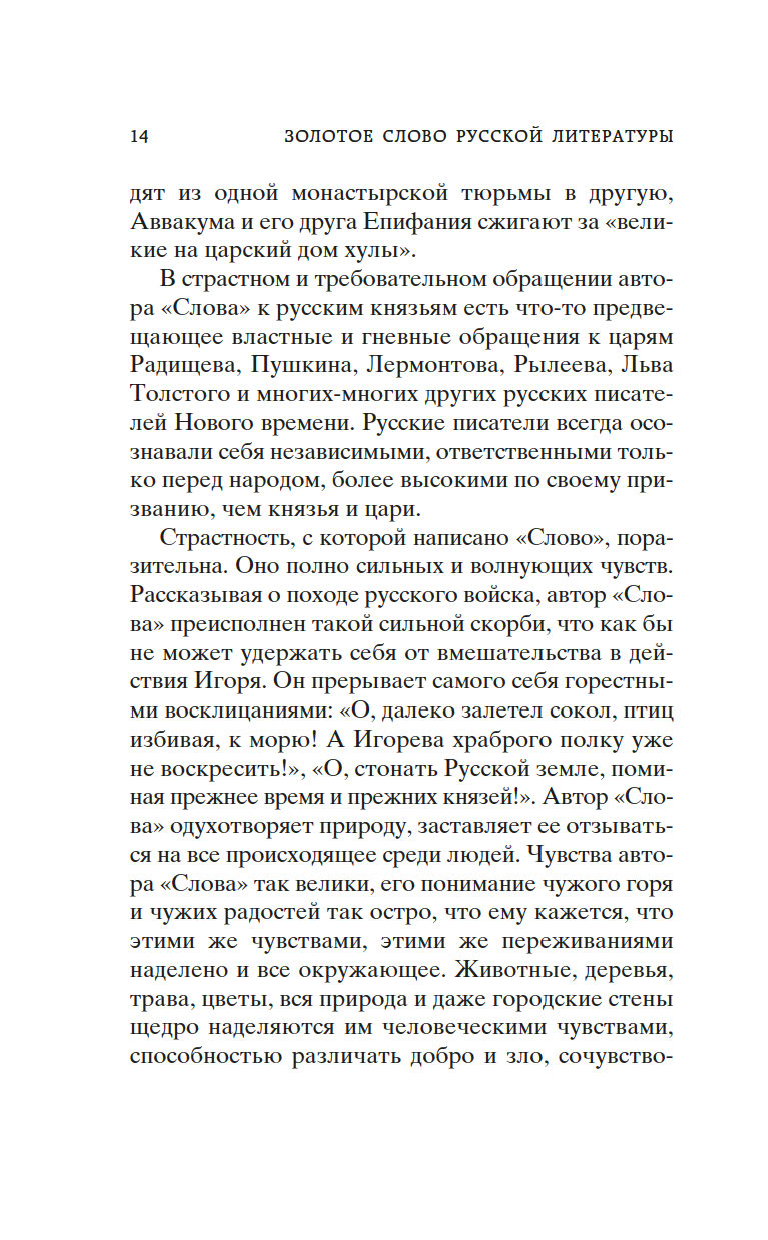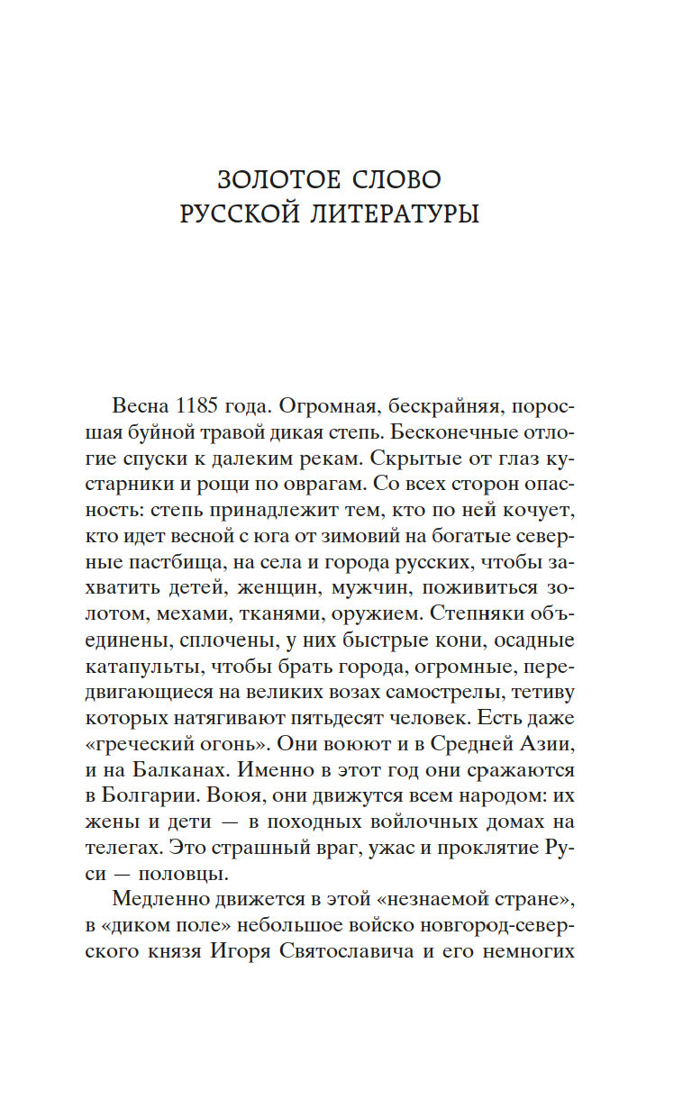 По своему художественному значению "Слово" выделяется на фоне других памятников древнерусской литературы и относится к числу наиболее значительных достижений европейского средневекового эпоса. Обнаруженное в составе рукописного сборника А. И. Мусиным-Пушкиным и опубликованное в 1800 году, "Слово", по словам поэта А. Н. Майкова, "сделало эпоху в нашем литературном мире". Оно привлекло внимание не только исследователей, но и поэтов, художников, музыкантов. "Слово" стало объектом многочисленных стихотворных переводов и переложений, лучшие из которых включены в настоящее издание.