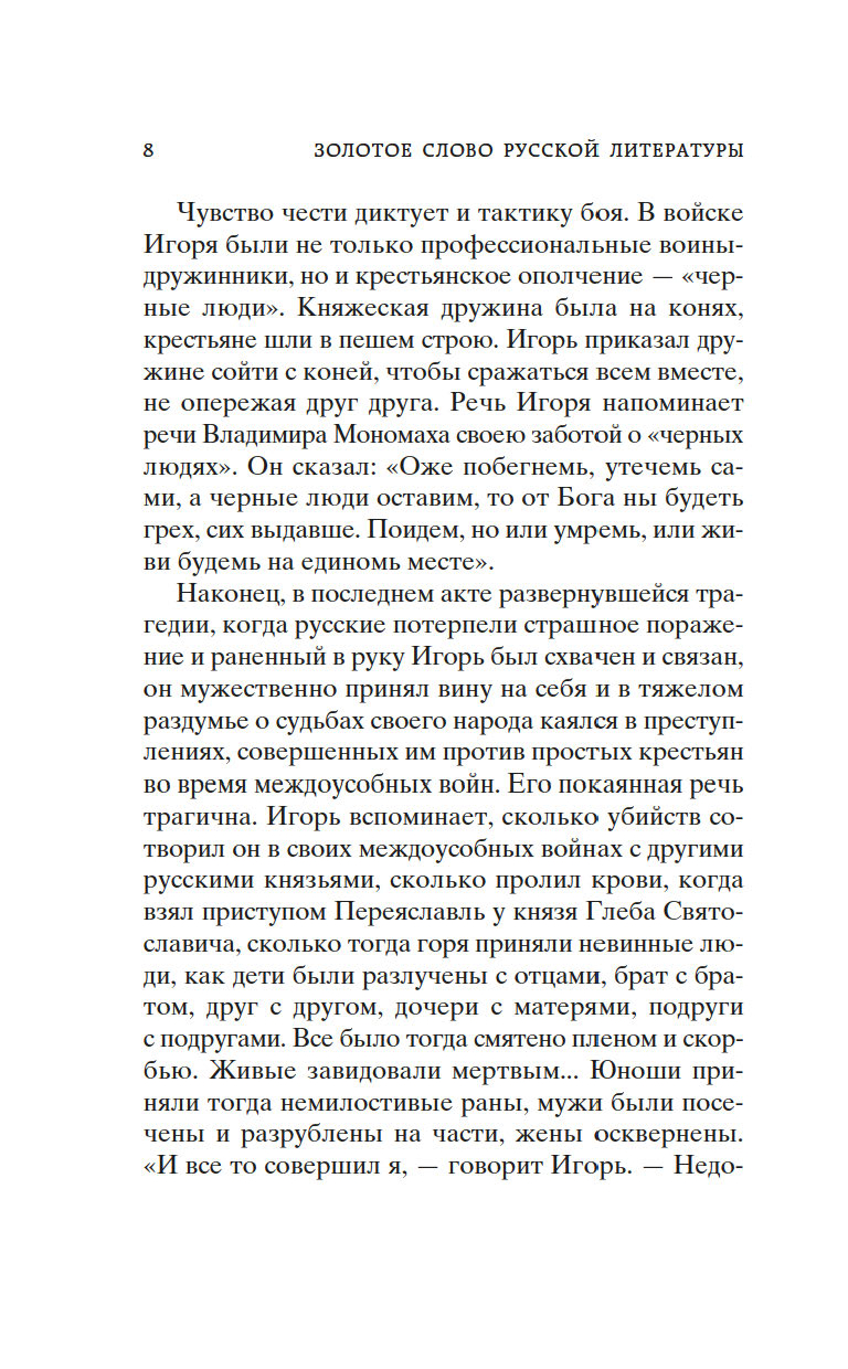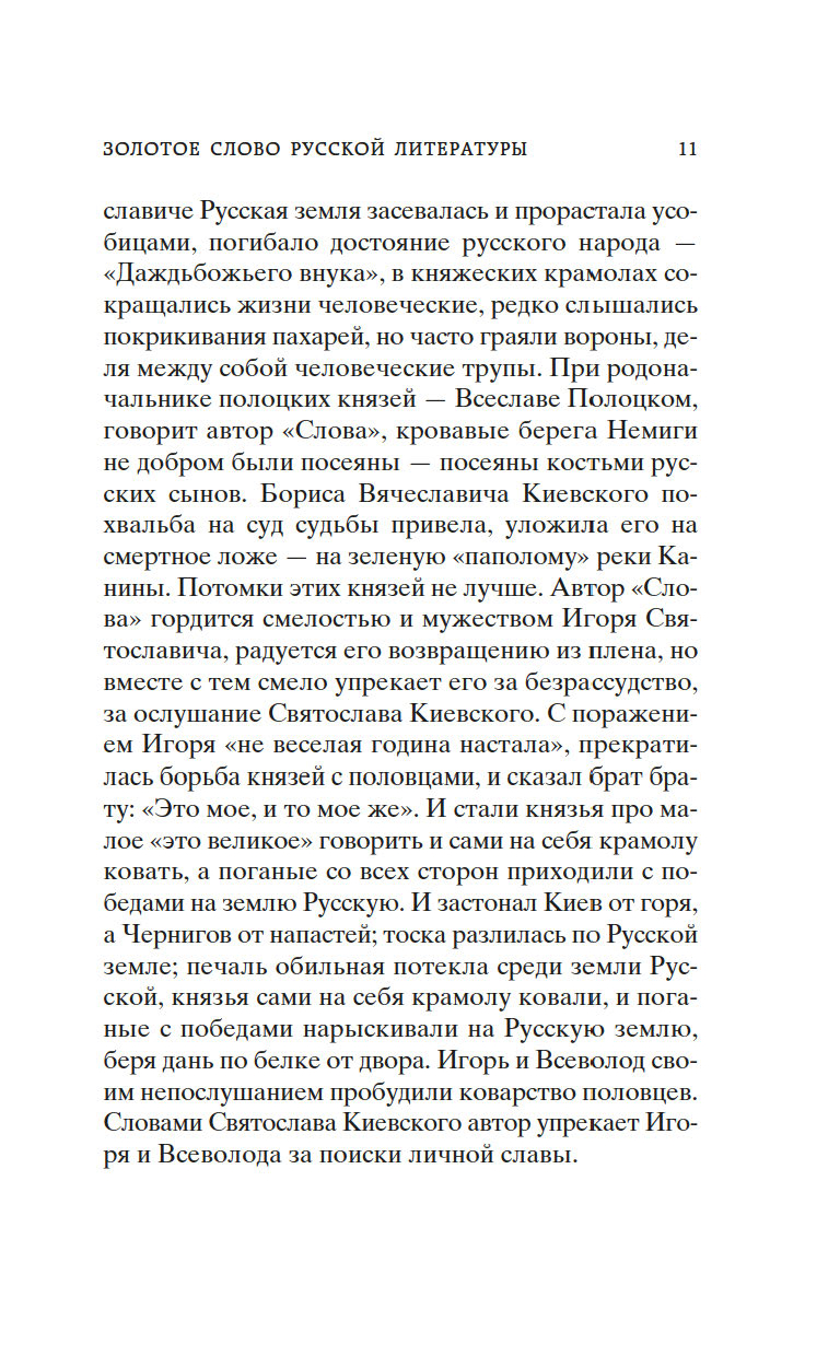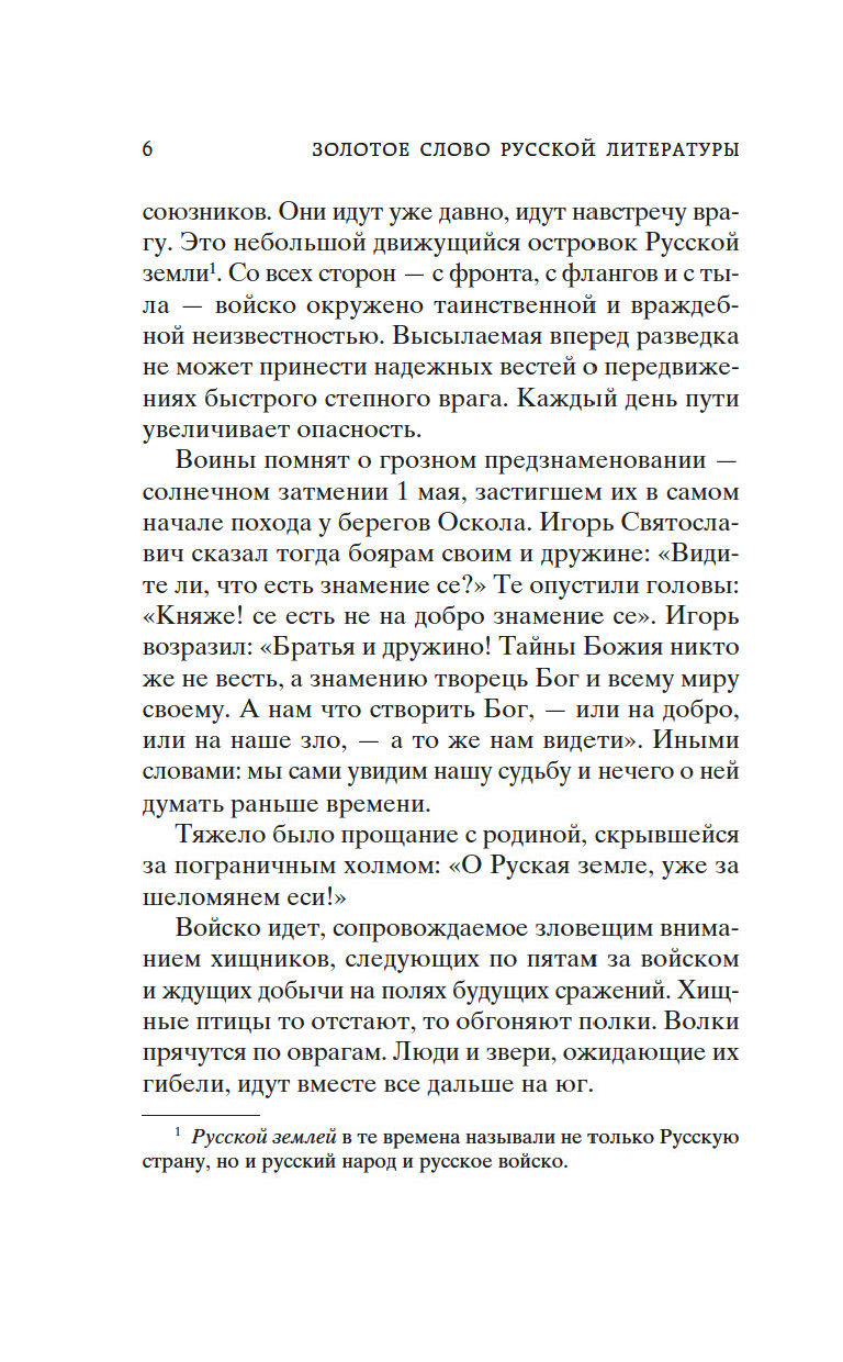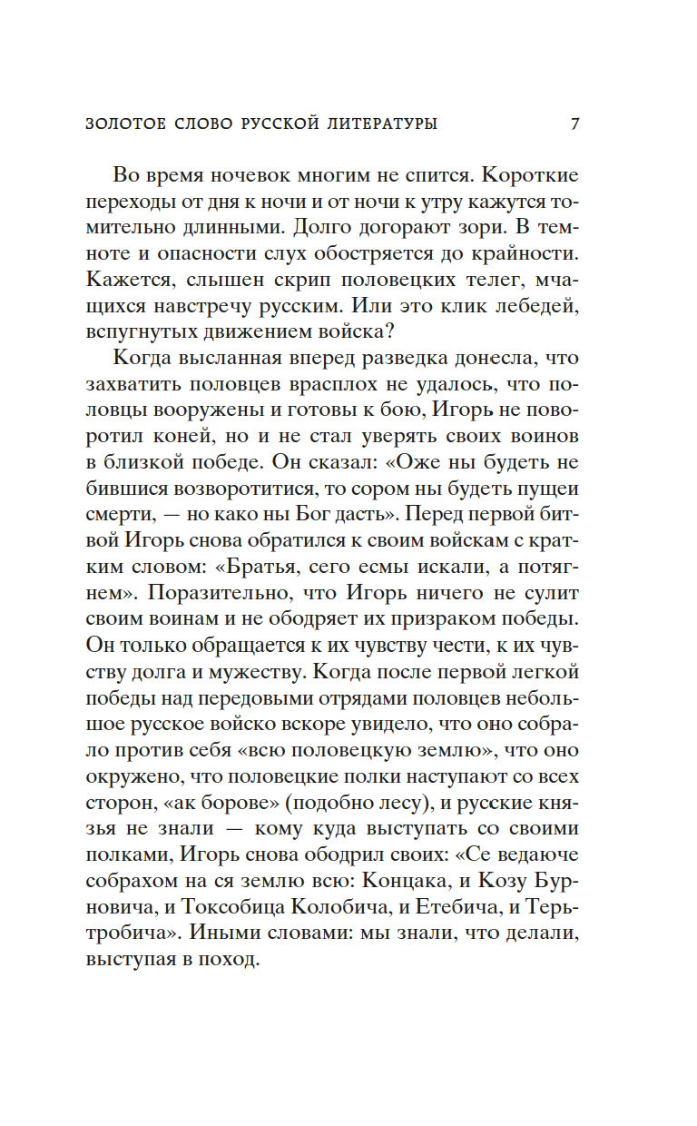 По своему художественному значению "Слово" выделяется на фоне других памятников древнерусской литературы и относится к числу наиболее значительных достижений европейского средневекового эпоса. Обнаруженное в составе рукописного сборника А. И. Мусиным-Пушкиным и опубликованное в 1800 году, "Слово", по словам поэта А. Н. Майкова, "сделало эпоху в нашем литературном мире". Оно привлекло внимание не только исследователей, но и поэтов, художников, музыкантов. "Слово" стало объектом многочисленных стихотворных переводов и переложений, лучшие из которых включены в настоящее издание.