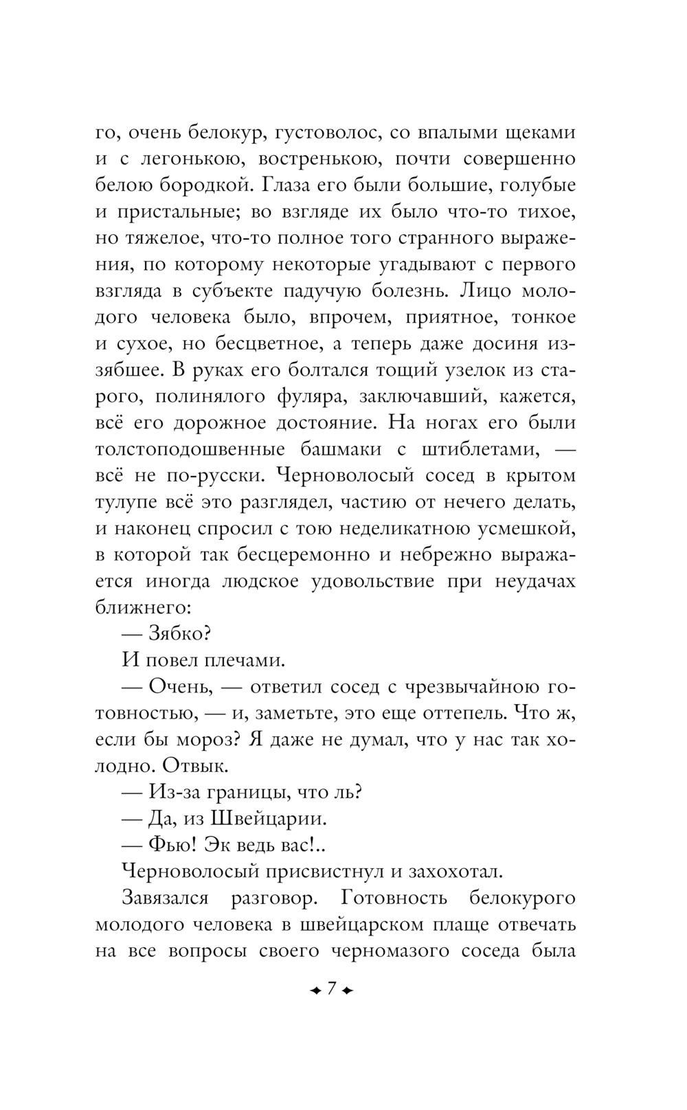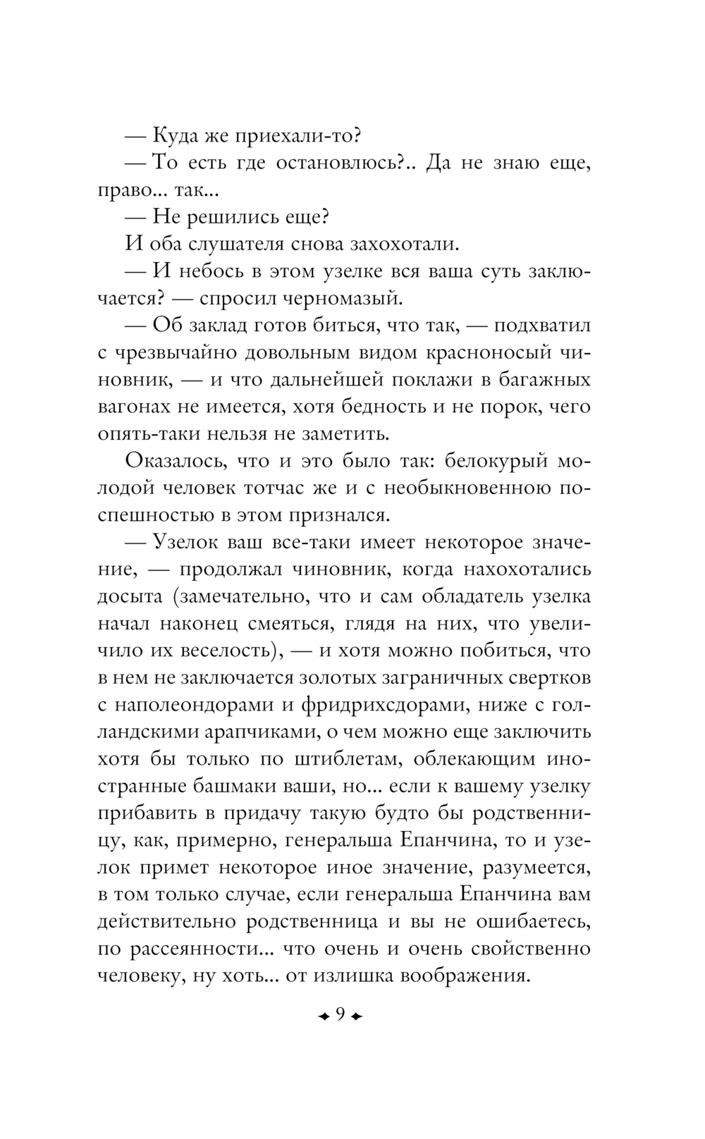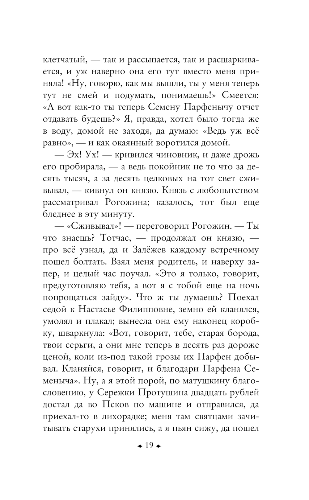Такие насыщенные сюжеты всегда "обречены" вызывать в читателе автоматический эффект присутствия. Секрет не только и не столько в событийных перипетиях, сколько в великолепно выписанных персонажах и электрических разрядах между ними. Суммой всех слагаемых становится превращение эффекта присутствия в "эффект соучастия": погружаясь в роман, вы становитесь сначала невидимым свидетелем событий, а потом сживаетесь с главным героем так прочно, что смотрите его глазами и меряете его мир биением собственного сердца. И тогда возникает главный вопрос: как выжить в этом мире, который казался вымышленным и вдруг стал таким реальным, и как здесь не сойти с ума. В конце концов, может ли общество определять степень чьей-то "нормальности"? Вообще, кто из нас князь Мышкин?