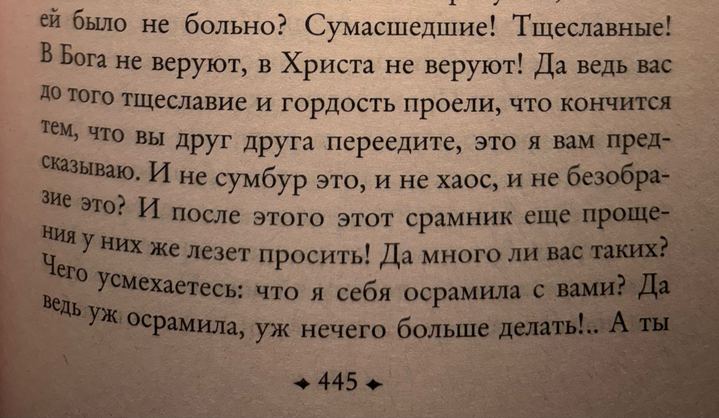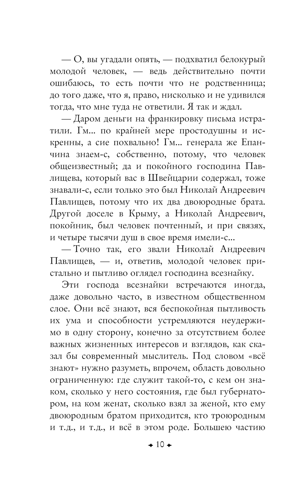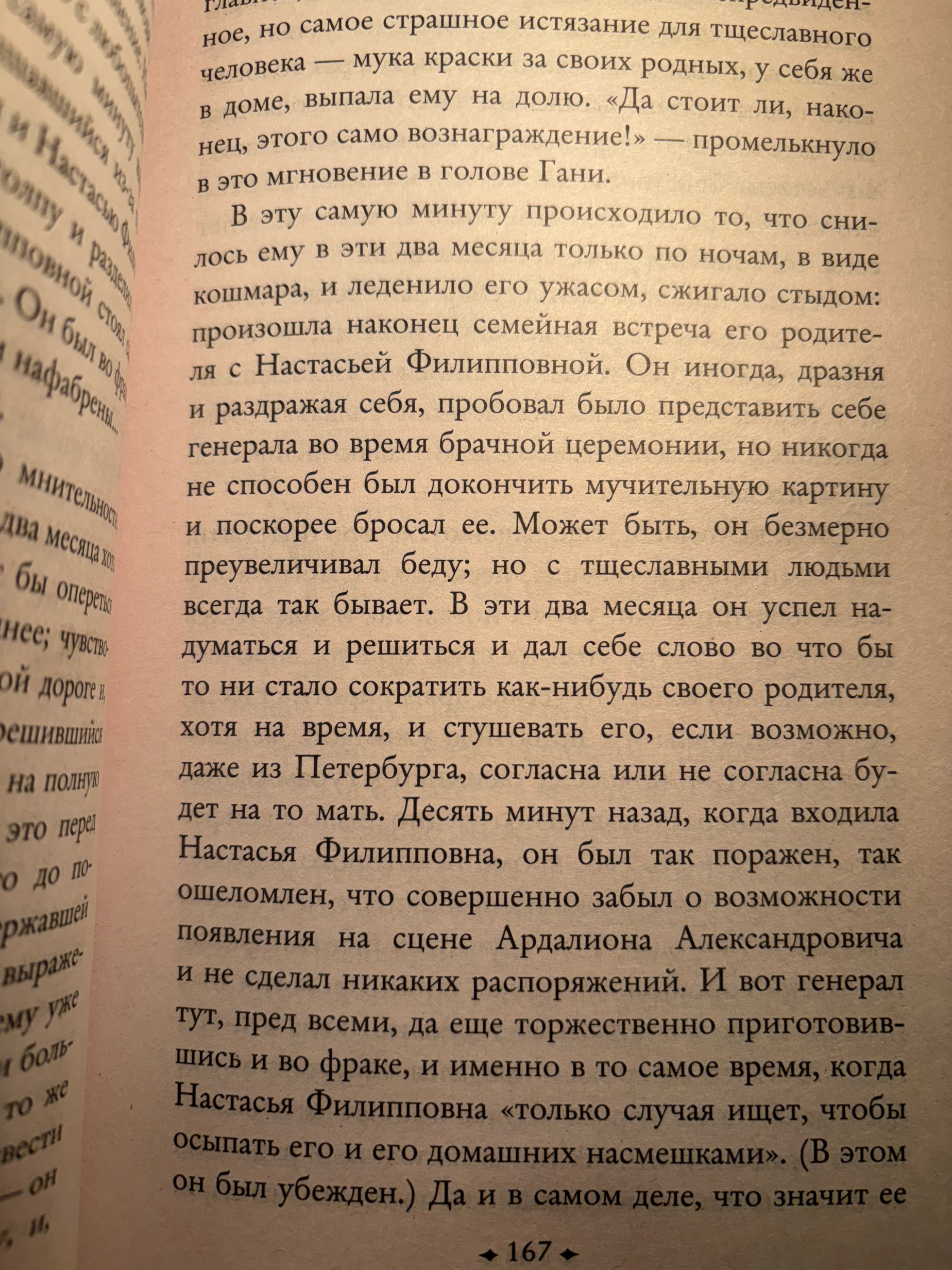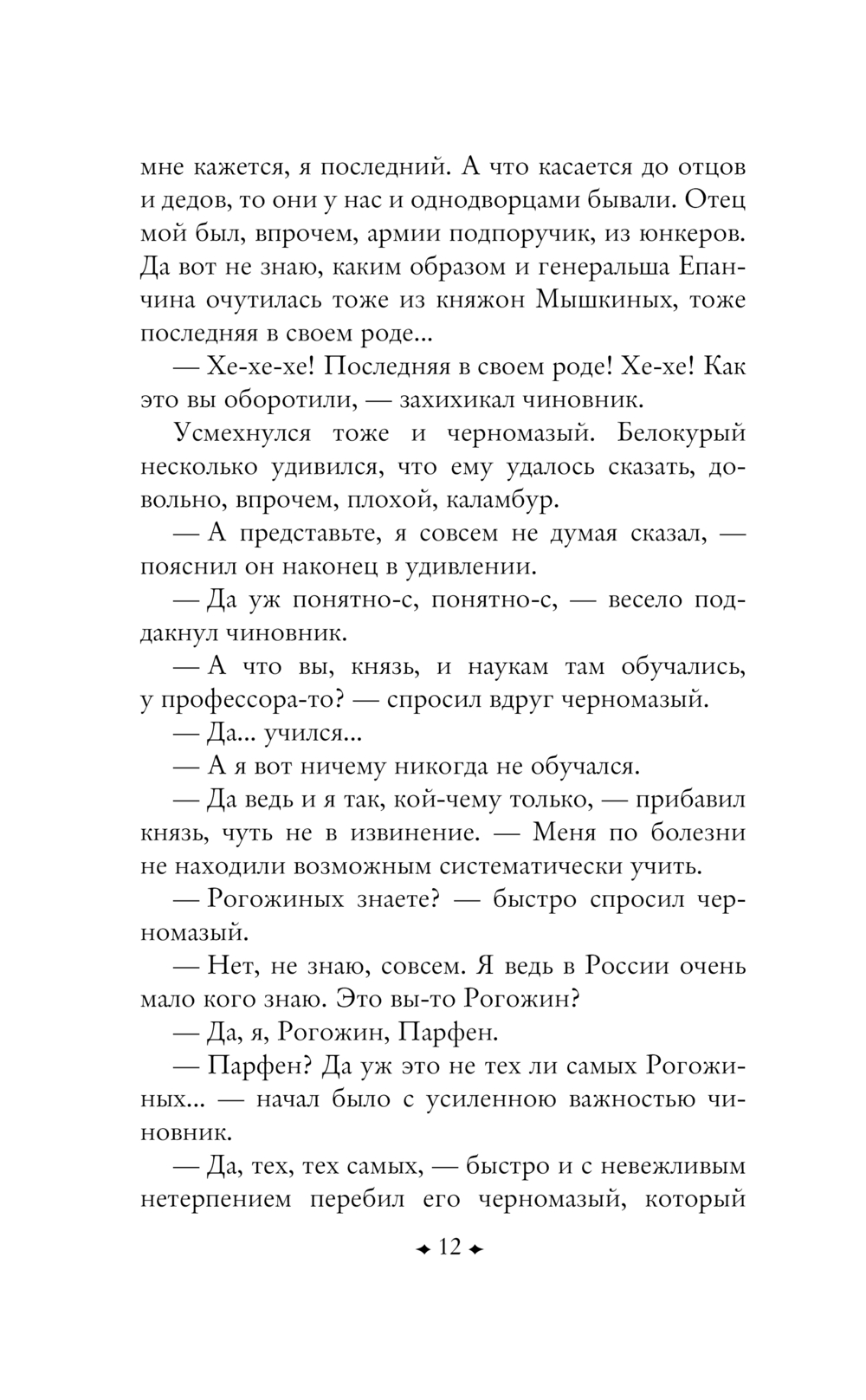 Такие насыщенные сюжеты всегда "обречены" вызывать в читателе автоматический эффект присутствия. Секрет не только и не столько в событийных перипетиях, сколько в великолепно выписанных персонажах и электрических разрядах между ними. Суммой всех слагаемых становится превращение эффекта присутствия в "эффект соучастия": погружаясь в роман, вы становитесь сначала невидимым свидетелем событий, а потом сживаетесь с главным героем так прочно, что смотрите его глазами и меряете его мир биением собственного сердца. И тогда возникает главный вопрос: как выжить в этом мире, который казался вымышленным и вдруг стал таким реальным, и как здесь не сойти с ума. В конце концов, может ли общество определять степень чьей-то "нормальности"? Вообще, кто из нас князь Мышкин?