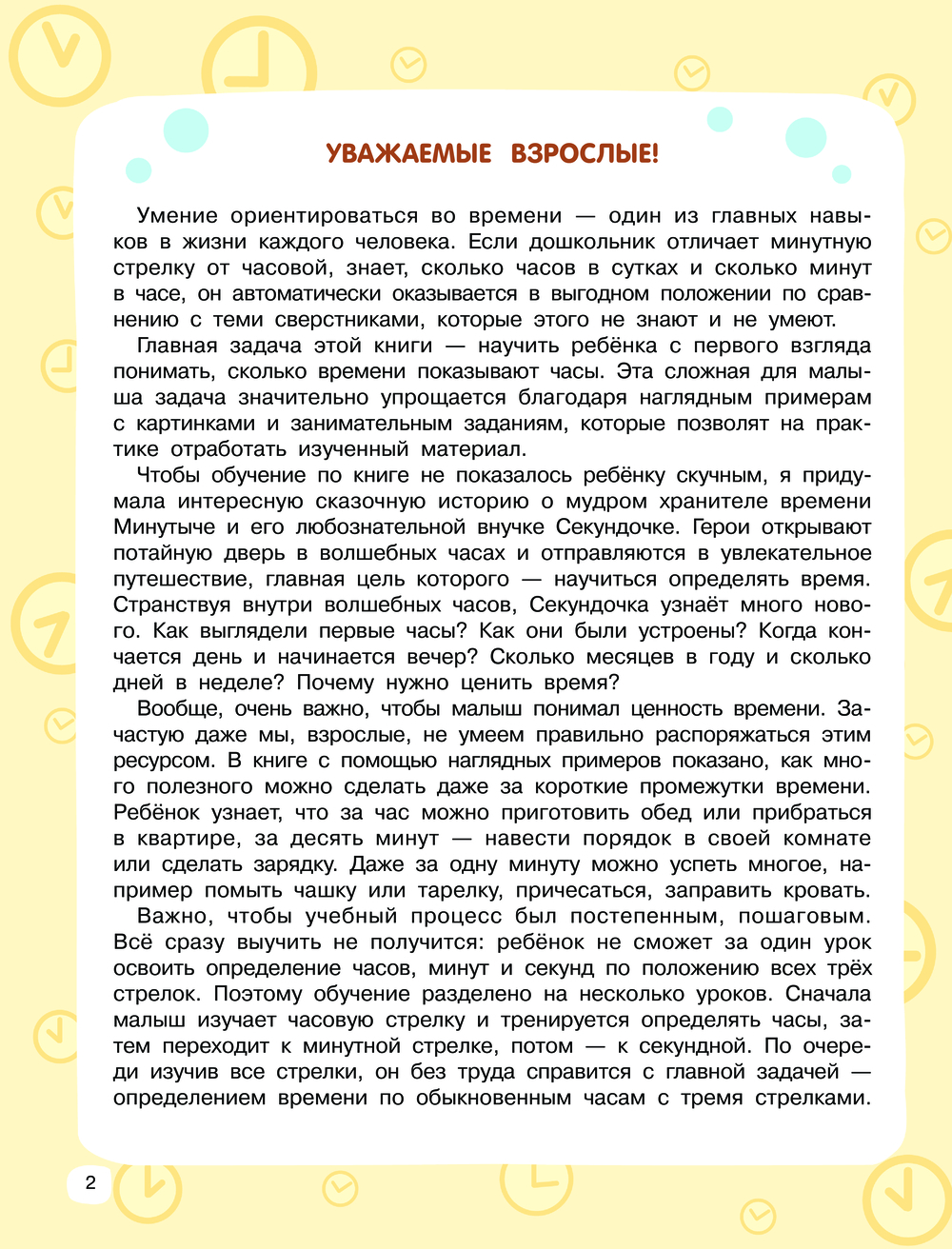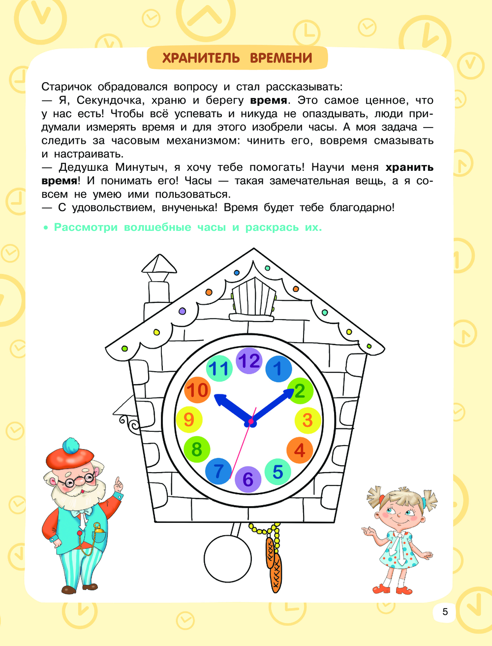 "Учимся определять время" – это книжка, которая научит дошкольника понимать время и определять его по часам. Сколько дней в неделе? А месяцев в году? Как называются времена года? Ответы на эти и другие вопросы даст мудрый Хранитель Времени. Волшебная история, рассказанная известным педагогом-практиком О. В. Узоровой, не даст ребёнку заскучать, сделает процесс обучения по-настоящему интересным. Сюжет сопровождается яркими рисунками-примерами и занимательными заданиями, благодаря которым дошкольник без труда овладеет навыком определения времени.